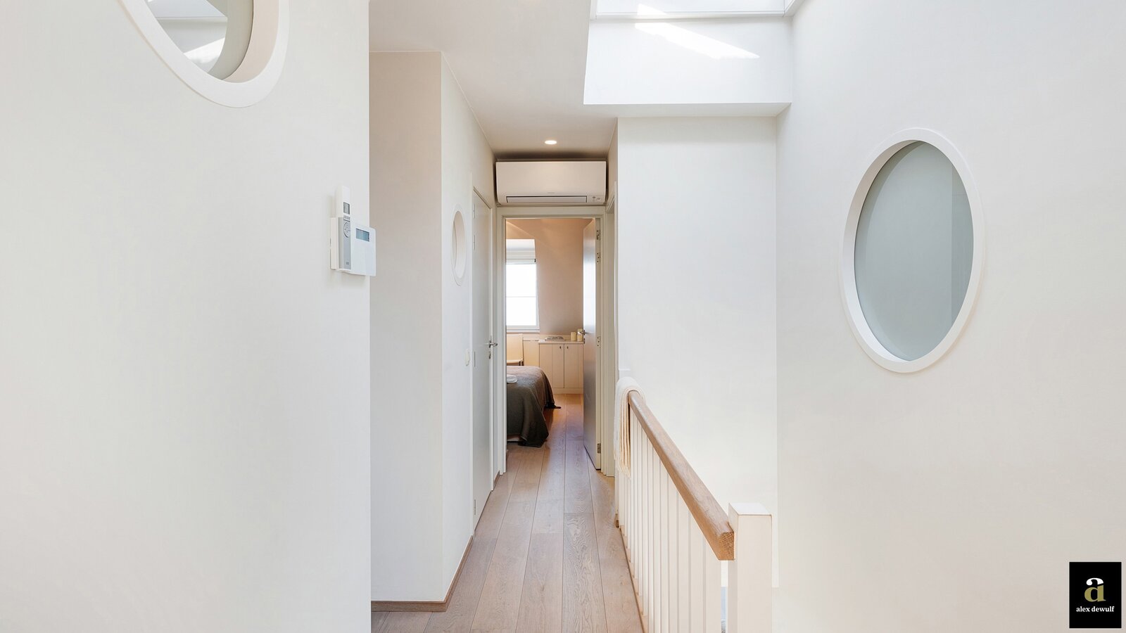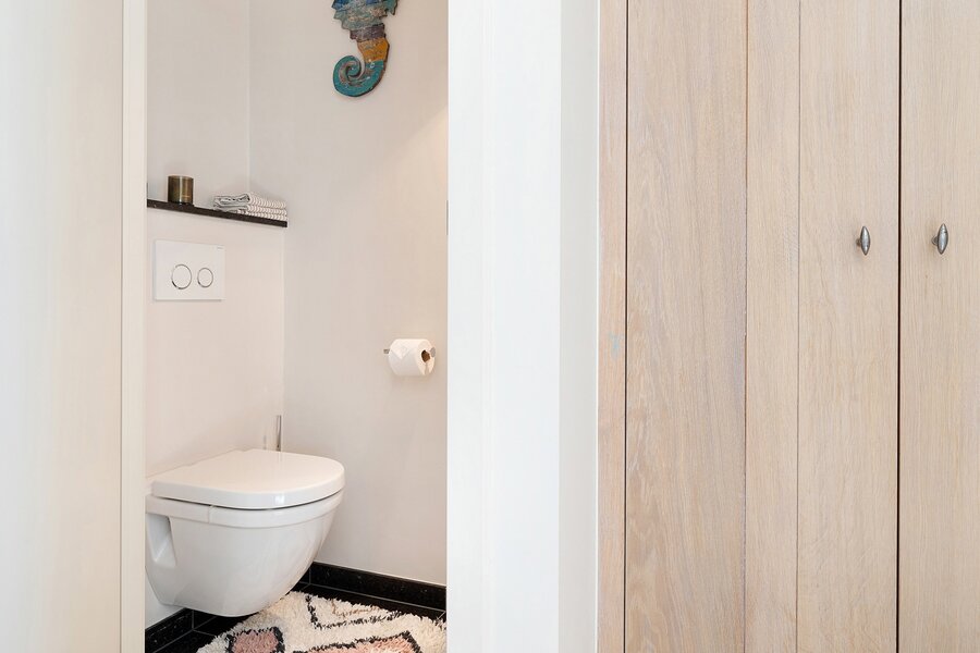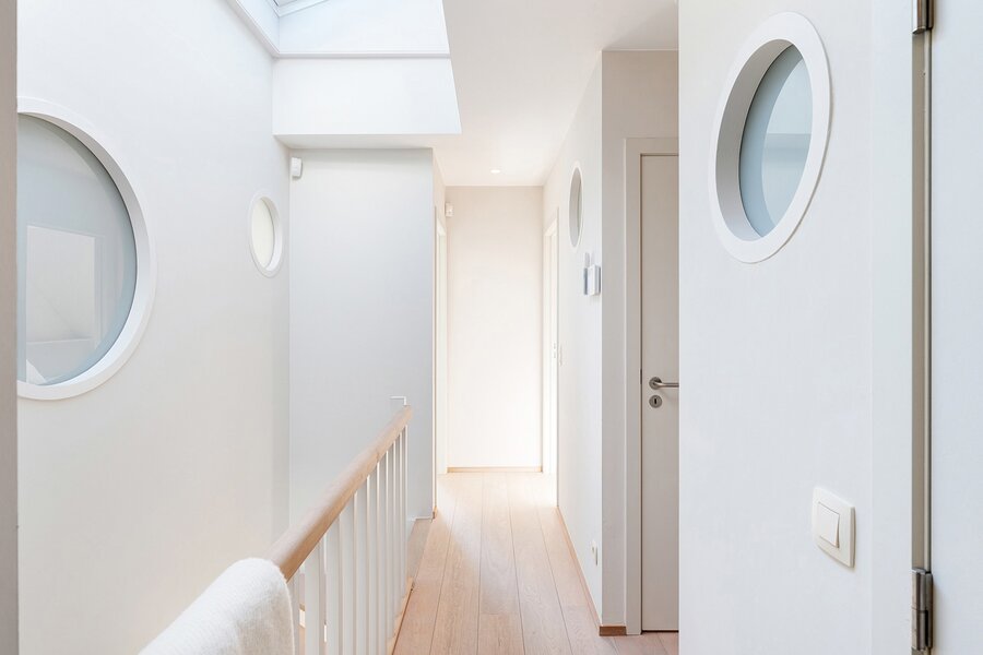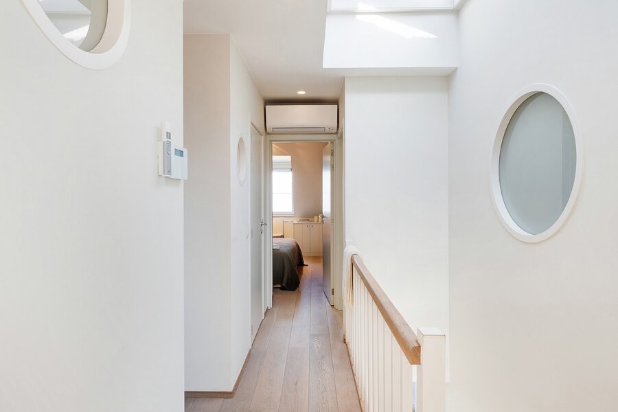 Op de bovenverdieping: nachthal die leidt naar 4 slaapkamers en de 3 badkamers, welke telkens tot in de puntjes afgewerkt zijn met kleerkasten op maat, wat het appartement perfect geschikt maakt voor een groot gezin of mensen die graag gasten ontvangen.