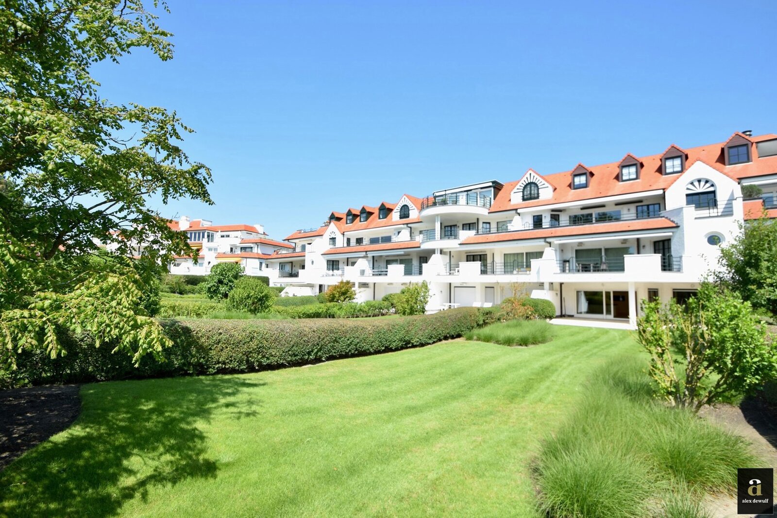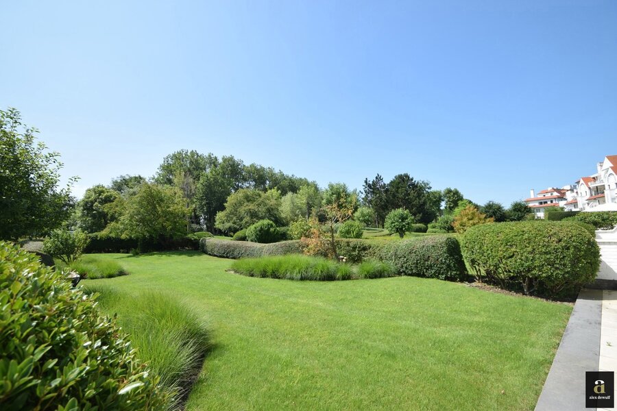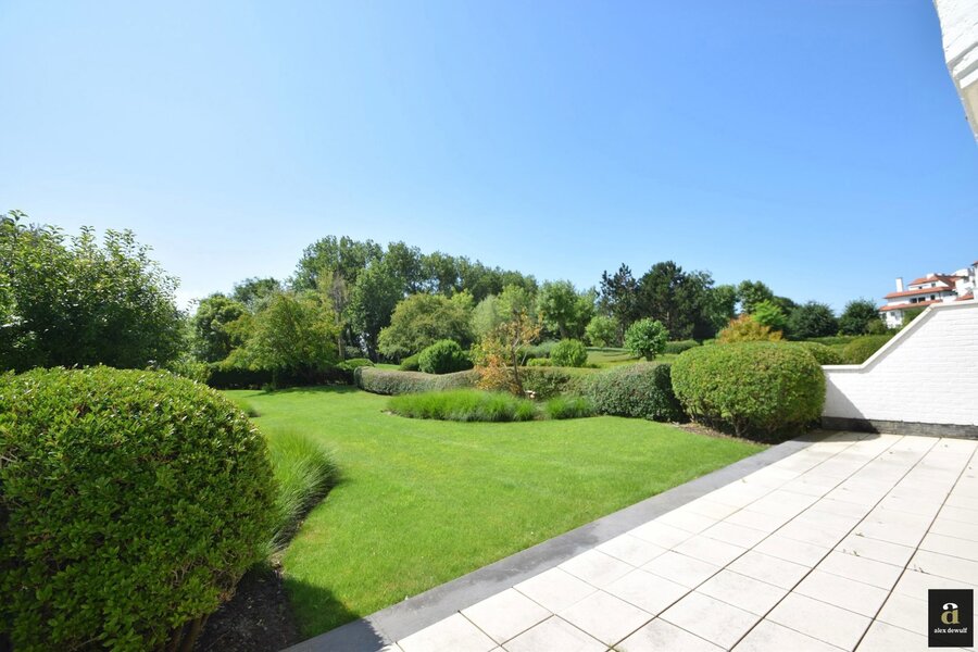 Zonovergoten tuin appartement van 146 m² met groot terras en prachtige tuin gelegen in het exclusieve domein Tennis Gardens op enkele passen van de zee en het Zwin. Indeling: inkomhal met vestiaire en gastentoilet. Ruime lichtrijke woon en eetkamer met toegang tot het zuidgericht terras met tuin. Open keuken voorzien van alle apparatuur (Miele toestellen). Berging/wasplaats. Master bedroom met aansluitende badkamer (dubbele lavabo, bad en toilet) en toegang tot het terras achteraan. 2de ruime slaapkamer met douchekamer en toegang tot het terras achteraan. 3de slaapkamer met douchekamer. Alle slaapkamers zijn voorzien van ingemaakte kasten. Mogelijkheid tot aankopen van een tandem garagebox in de residentie. Privatieve kelder en fietsenberging. Binnenzwembad toegankelijk voor de bewoners van de residentie. Conciërge.