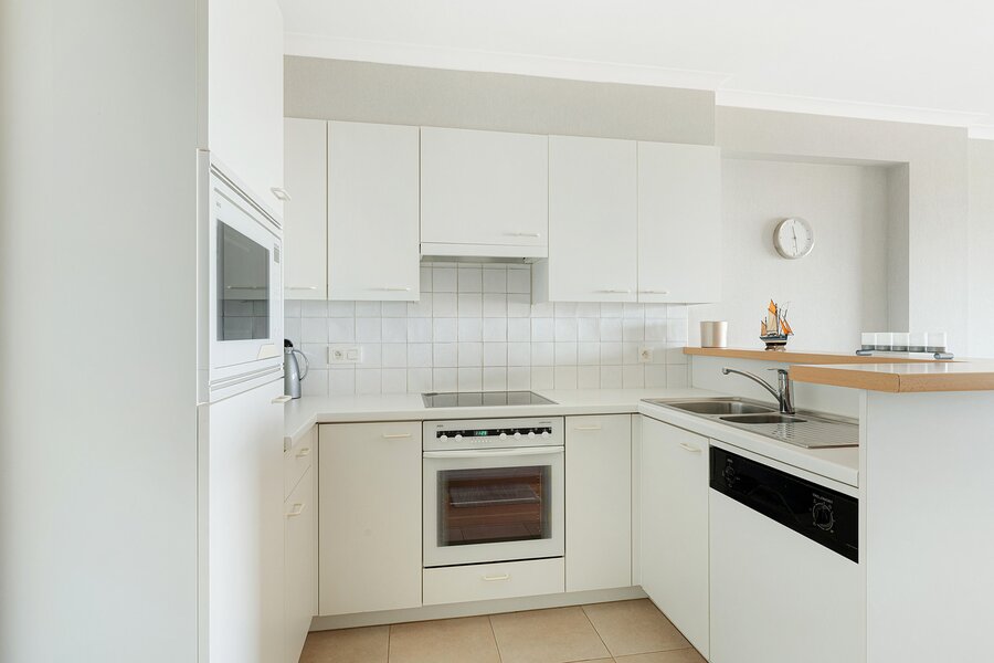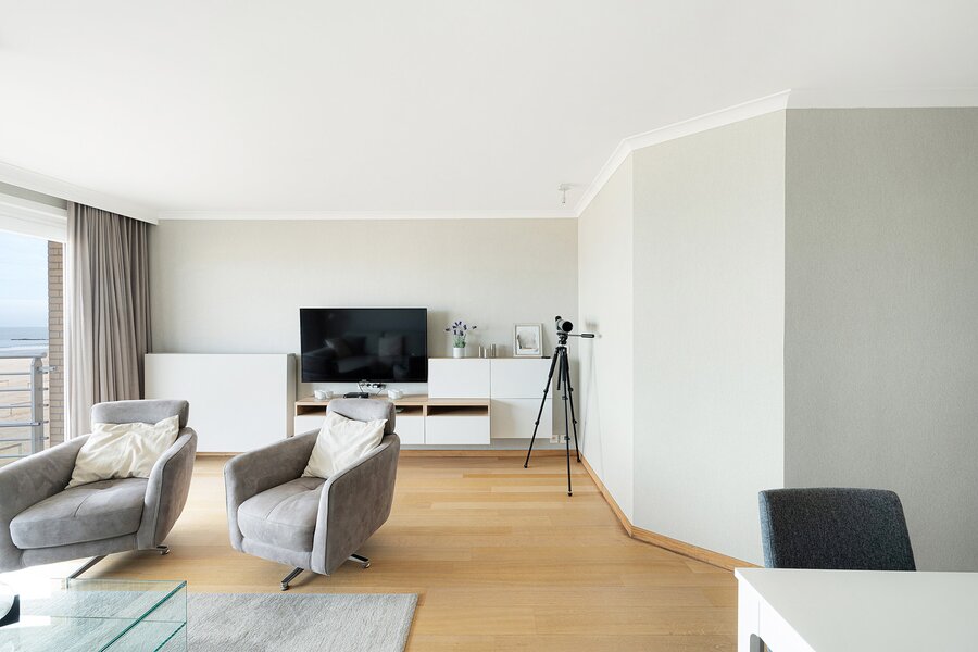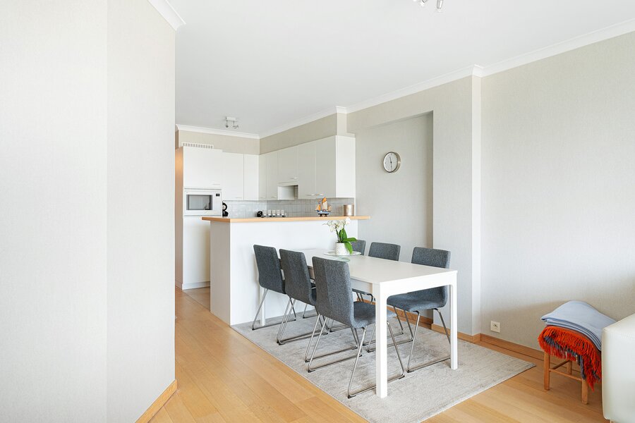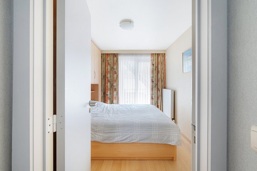 Het appartement beschikt over twee volwaardige slaapkamers en een verzorgde badkamer. Het terras biedt voldoende ruimte voor een tafeltje met twee stoelen, ideaal om in alle rust te genieten van het open zicht en de zeelucht.