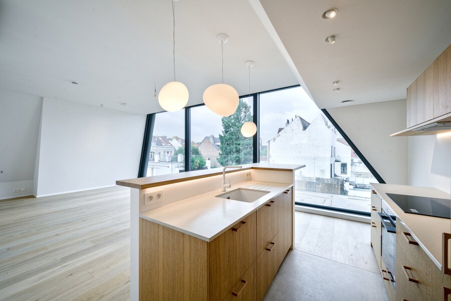 In een gewilde wijk vlakbij het Ter Kamerenbos en op een steenworp afstand van winkels, scholen en openbaar vervoer, prachtig nieuw penthouse op de 3e verdieping van een klein modern gebouw met 4 appartementen.