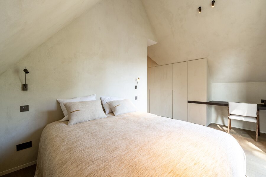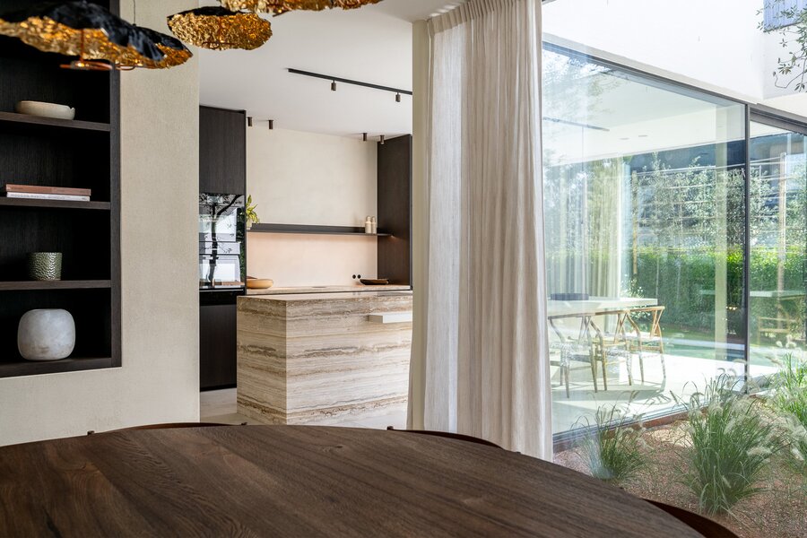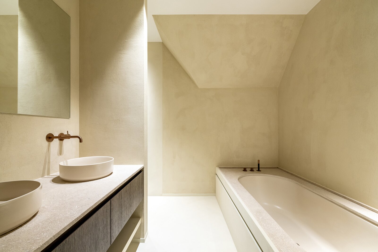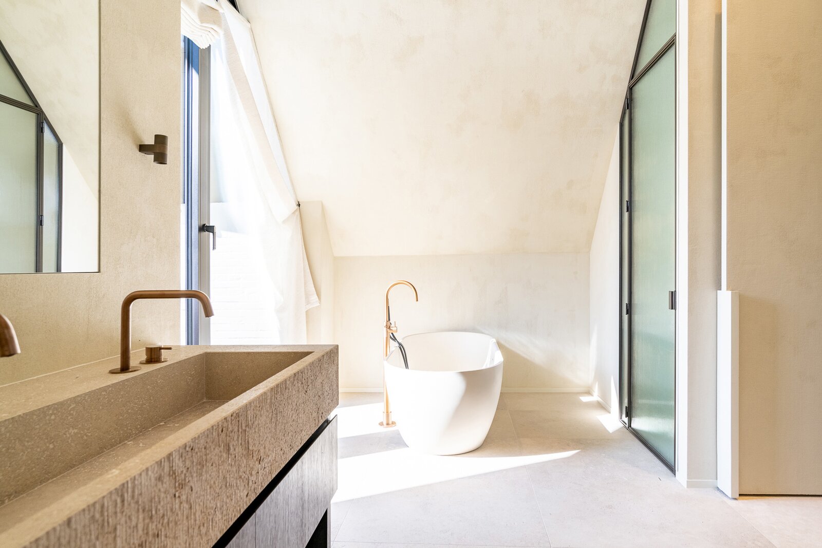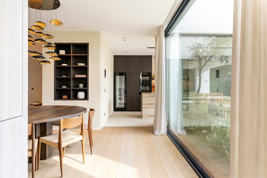 Bij binnenkomst word je verwelkomd in een stijlvolle inkomhal met vestiaire en gastentoilet. De ruime eet- en leefruimte geniet van een overvloed aan natuurlijk licht en geeft uit op het prachtig aangelegde terras. de open keuken is volledig uitgerust met kwalitatieve toestellen en biedt alle comfort.