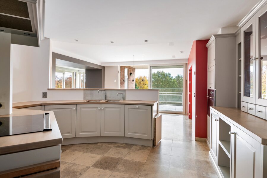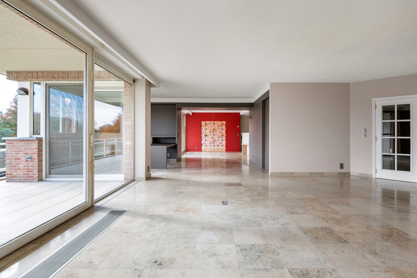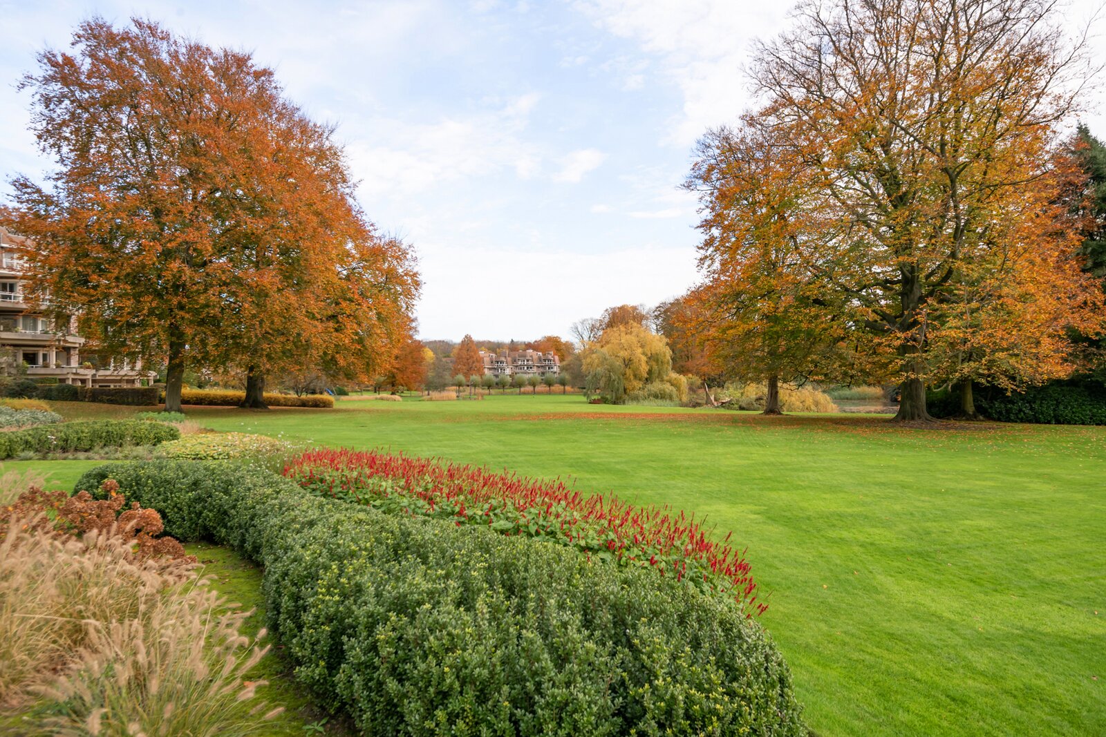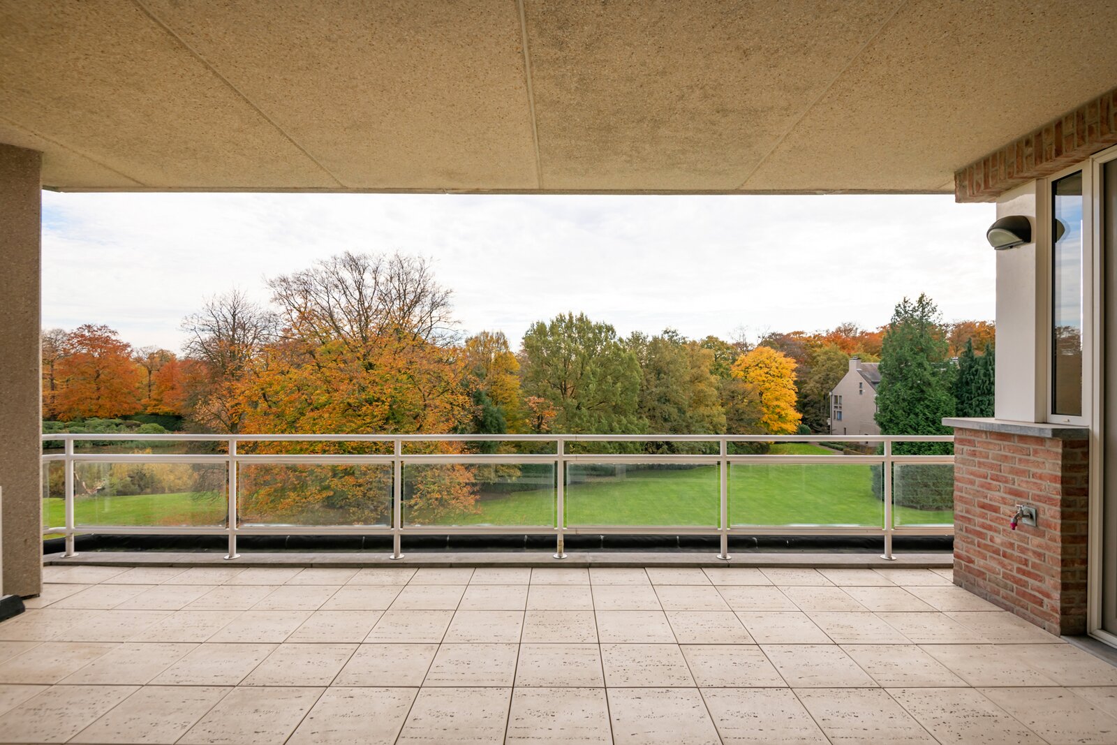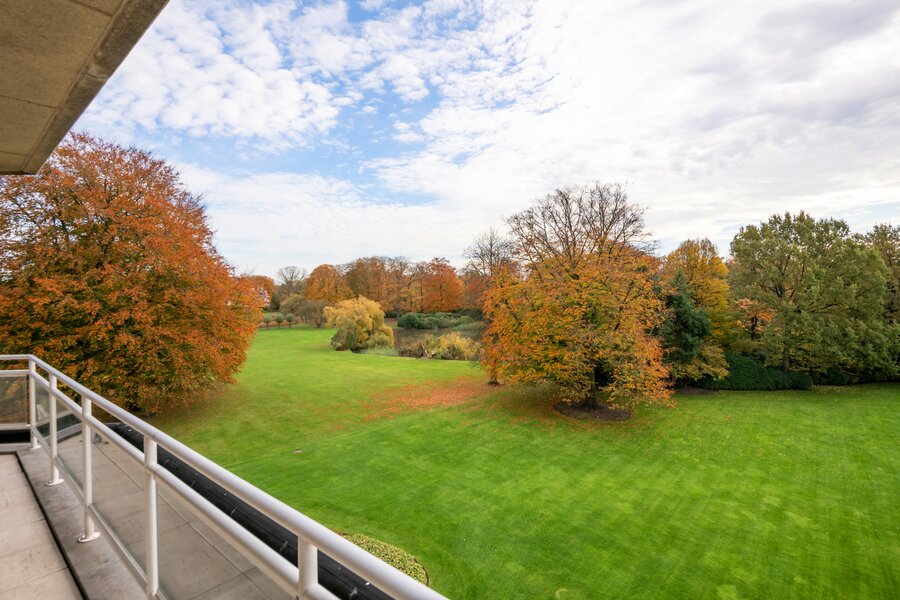 Prinsendreef 15 - 2950 Kapellen Dit prachtige en ruime appartement is gelegen in het meest recente gebouw van domein Willaard, met inrit langs de Prinsendreef. Het maakt deel uit van een prachtig parkdomein van ca 12ha en geniet een unieke rust en adembenemende zichten op het park en de vijvers. We betreden het appartement rechtstreeks met de lift in de ruime inkomhal op travertin tegelvloer. Hier bevindt zich het gastentoilet met handenwasser en een praktische ingemaakte vestiairekast. Verder door betreden we de ruime open leefruimte op dezelfde vloer. Deze omvat een zithoek met open haard en toegang tot het ruim overdekt terras (25m²) met zicht op het park. Hiernaast bevindt zich een open bureauruimte met ingemaakt meubel en kasten. Tevens een praktische ingemaakte bergkast met schuifdeur. Aansluitend komen we in de open eetkamer met toegang tot het tweede terras (25m²) met zicht op het park. De zithoek en eetkamer connecteren over de hele breedte van het appartement, wat een zeer open en ruimtelijk gevoel geeft. Naast de eetkamer bevindt zich de half op en keuken die voorzien is van alle toestellen, veel opbergruimte en een zeer praktische indeling. Aan de parkzijde bevindt zich ook de hoofdslaapkamer met rechtstreekse toegang tot het terras. Deze is voorzien van ingemaakte dressingkasten en extra opbergruimte. Ensuite treffen we de hoofd badkamer met ligbad, dubbele lavabo, wc en inloopdouche. Deze badkamer werd reeds vernieuwd. Aan de achterzijde van het appartement bevindt zich de nachthal, die toegang geeft tot een 2e slaapkamer op parket met eigen balkon op de noordzijde, tevens voorzien van eigen badkamer met ligbad, douche, dubbele lavabo en wc. Tenslotte is er nog de derde slaapkamer op parket met eigen balkon. Hiernaast is ook een praktische wasplaats/berging ondergebracht met aansluitingen wasmachine en droogkast. De beide terrassen aan de zuid-west georiënteerde parkzijde van het domein zijn overdekt en voorzien van een extra berging. Hier geniet u heel de dag door van het prachtige zicht en de aangename ochtend en middagzon. Eén van de terrassen is voorzien van terrasverwarmers. In de ondergrondse garage zijn nog een autostaanplaats met berging en afgesloten garagebox inbegrepen in de prijs.