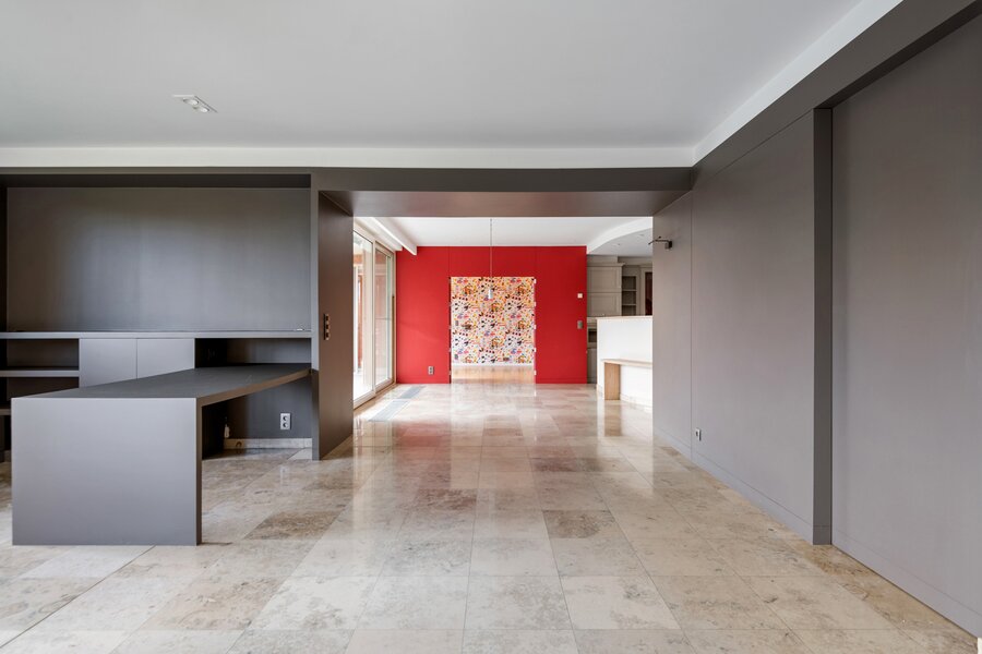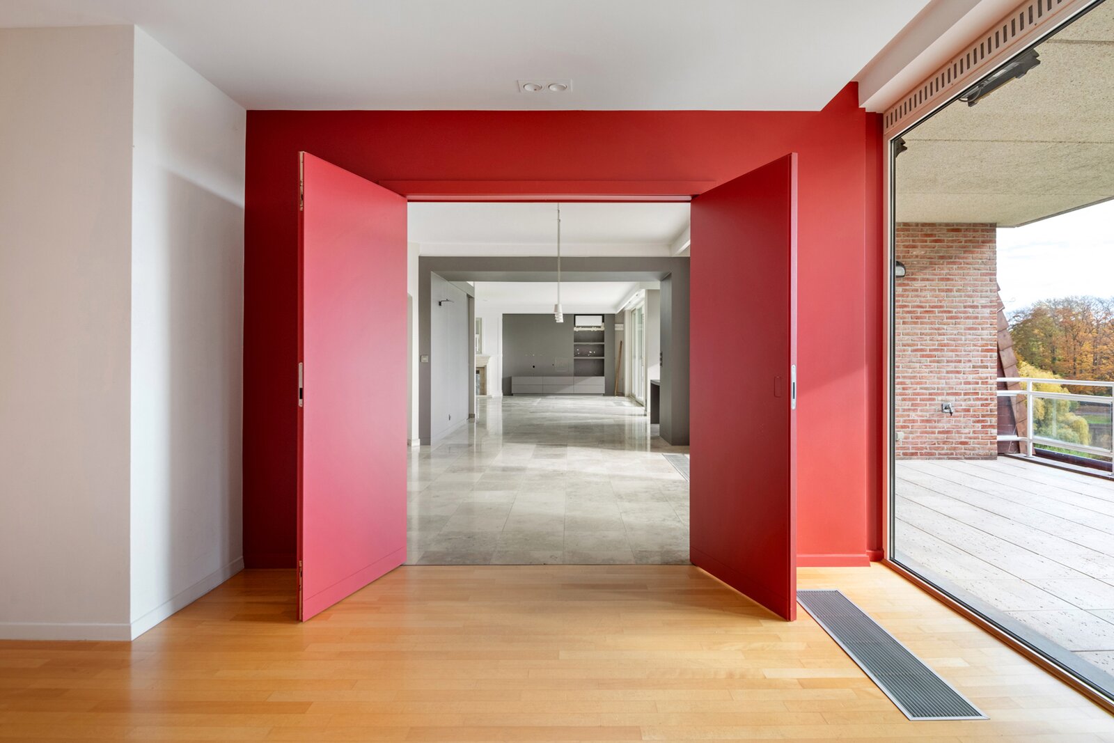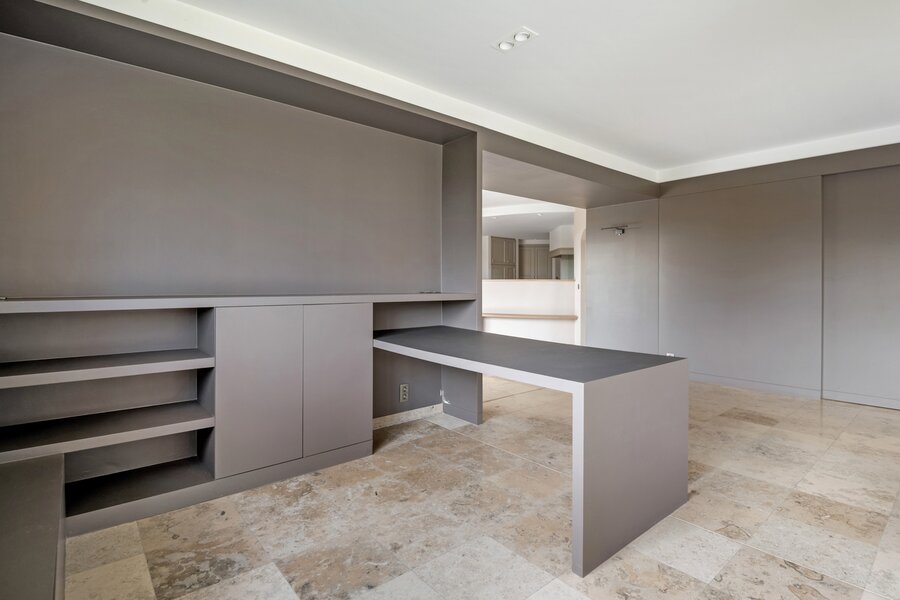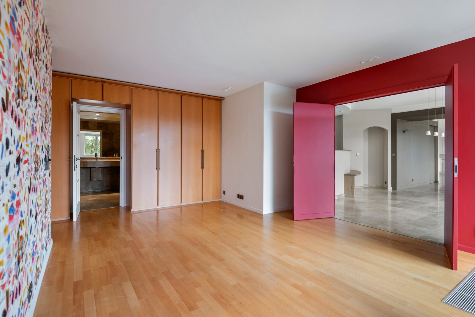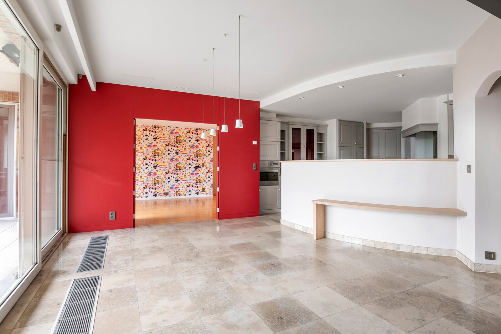 Prinsendreef 15 - 2950 Kapellen Dit prachtige en ruime appartement is gelegen in het meest recente gebouw van domein Willaard, met inrit langs de Prinsendreef. Het maakt deel uit van een prachtig parkdomein van ca 12ha en geniet een unieke rust en adembenemende zichten op het park en de vijvers. We betreden het appartement rechtstreeks met de lift in de ruime inkomhal op travertin tegelvloer. Hier bevindt zich het gastentoilet met handenwasser en een praktische ingemaakte vestiairekast. Verder door betreden we de ruime open leefruimte op dezelfde vloer. Deze omvat een zithoek met open haard en toegang tot het ruim overdekt terras (25m²) met zicht op het park. Hiernaast bevindt zich een open bureauruimte met ingemaakt meubel en kasten. Tevens een praktische ingemaakte bergkast met schuifdeur. Aansluitend komen we in de open eetkamer met toegang tot het tweede terras (25m²) met zicht op het park. De zithoek en eetkamer connecteren over de hele breedte van het appartement, wat een zeer open en ruimtelijk gevoel geeft. Naast de eetkamer bevindt zich de half op en keuken die voorzien is van alle toestellen, veel opbergruimte en een zeer praktische indeling. Aan de parkzijde bevindt zich ook de hoofdslaapkamer met rechtstreekse toegang tot het terras. Deze is voorzien van ingemaakte dressingkasten en extra opbergruimte. Ensuite treffen we de hoofd badkamer met ligbad, dubbele lavabo, wc en inloopdouche. Deze badkamer werd reeds vernieuwd. Aan de achterzijde van het appartement bevindt zich de nachthal, die toegang geeft tot een 2e slaapkamer op parket met eigen balkon op de noordzijde, tevens voorzien van eigen badkamer met ligbad, douche, dubbele lavabo en wc. Tenslotte is er nog de derde slaapkamer op parket met eigen balkon. Hiernaast is ook een praktische wasplaats/berging ondergebracht met aansluitingen wasmachine en droogkast. De beide terrassen aan de zuid-west georiënteerde parkzijde van het domein zijn overdekt en voorzien van een extra berging. Hier geniet u heel de dag door van het prachtige zicht en de aangename ochtend en middagzon. Eén van de terrassen is voorzien van terrasverwarmers. In de ondergrondse garage zijn nog een autostaanplaats met berging en afgesloten garagebox inbegrepen in de prijs.