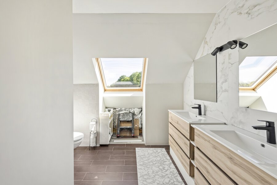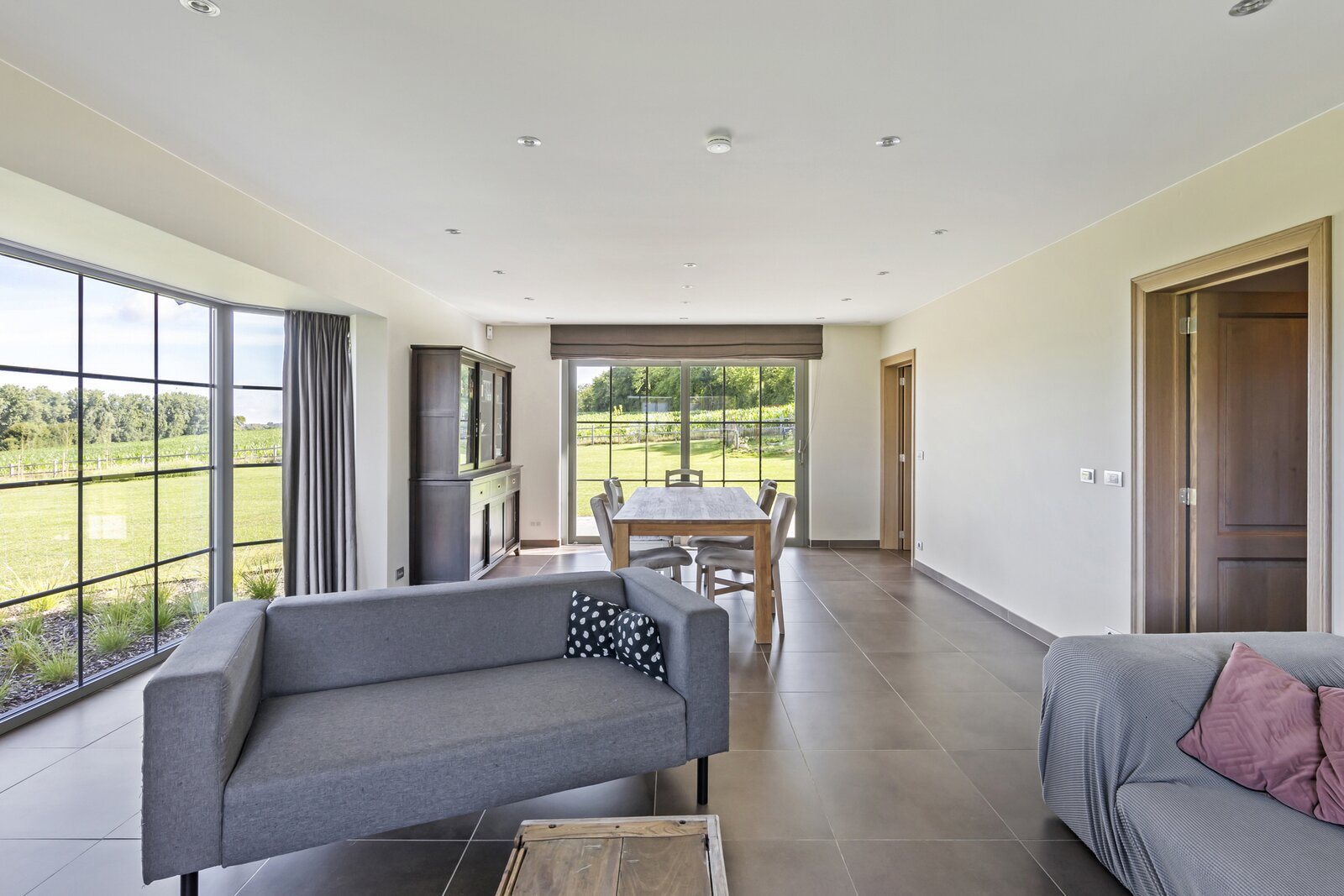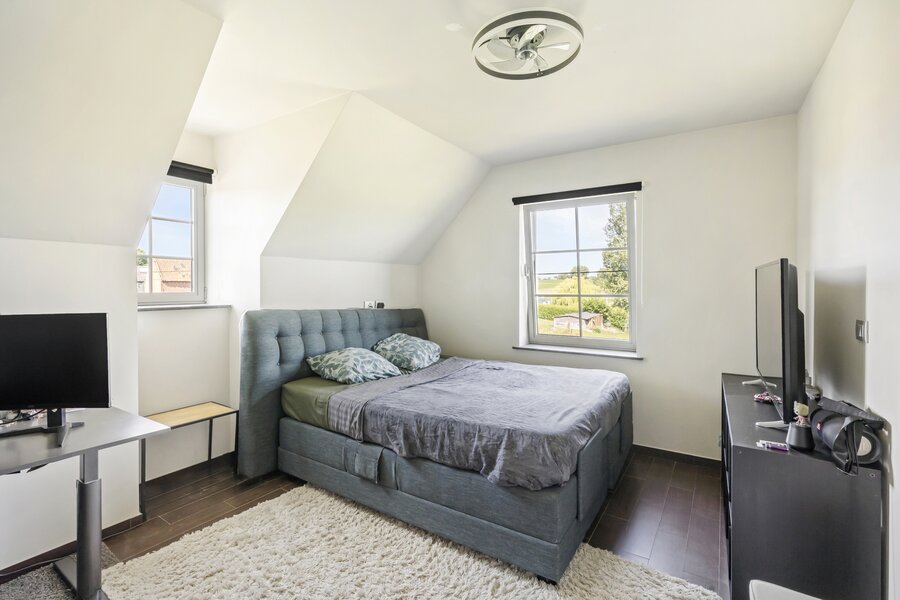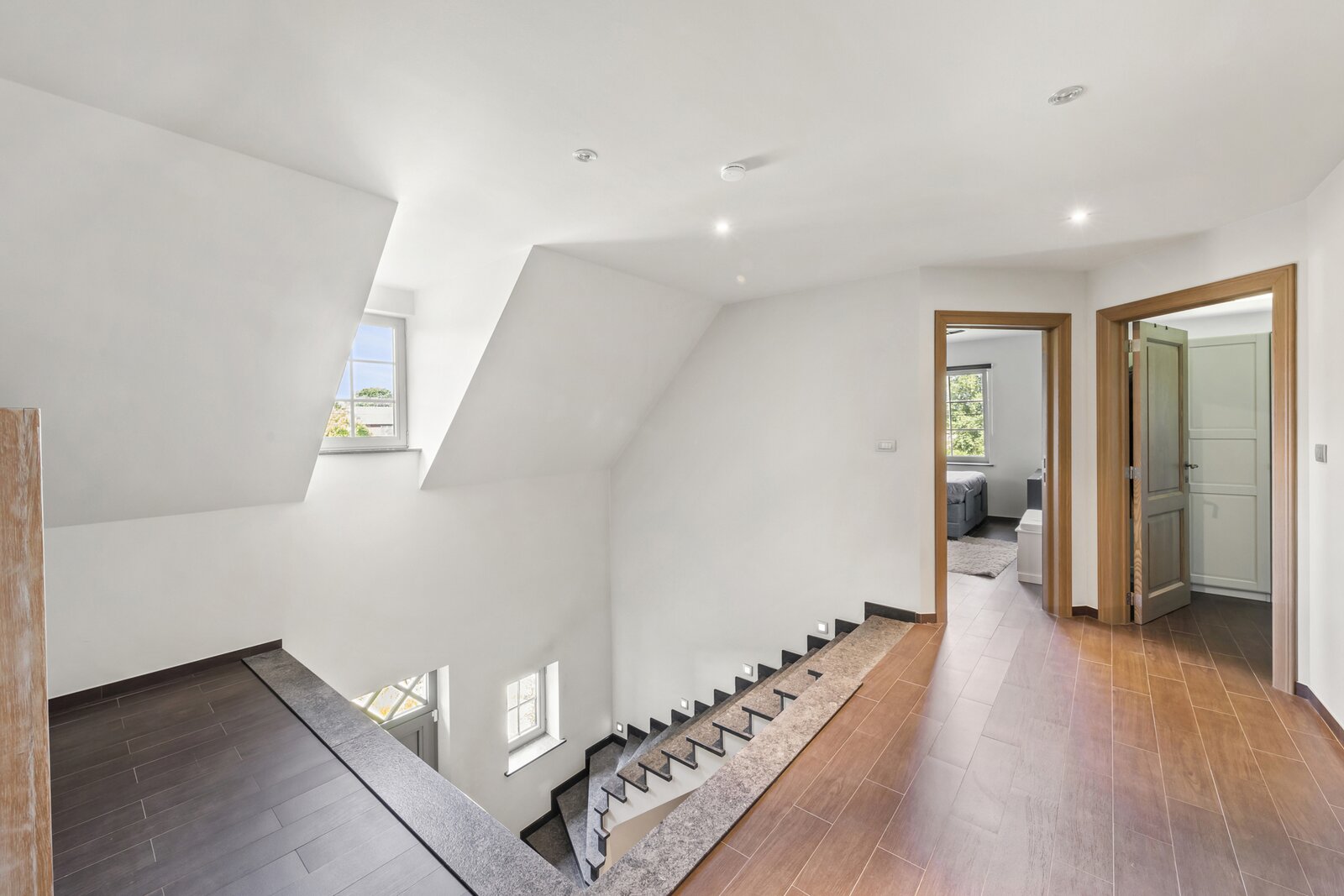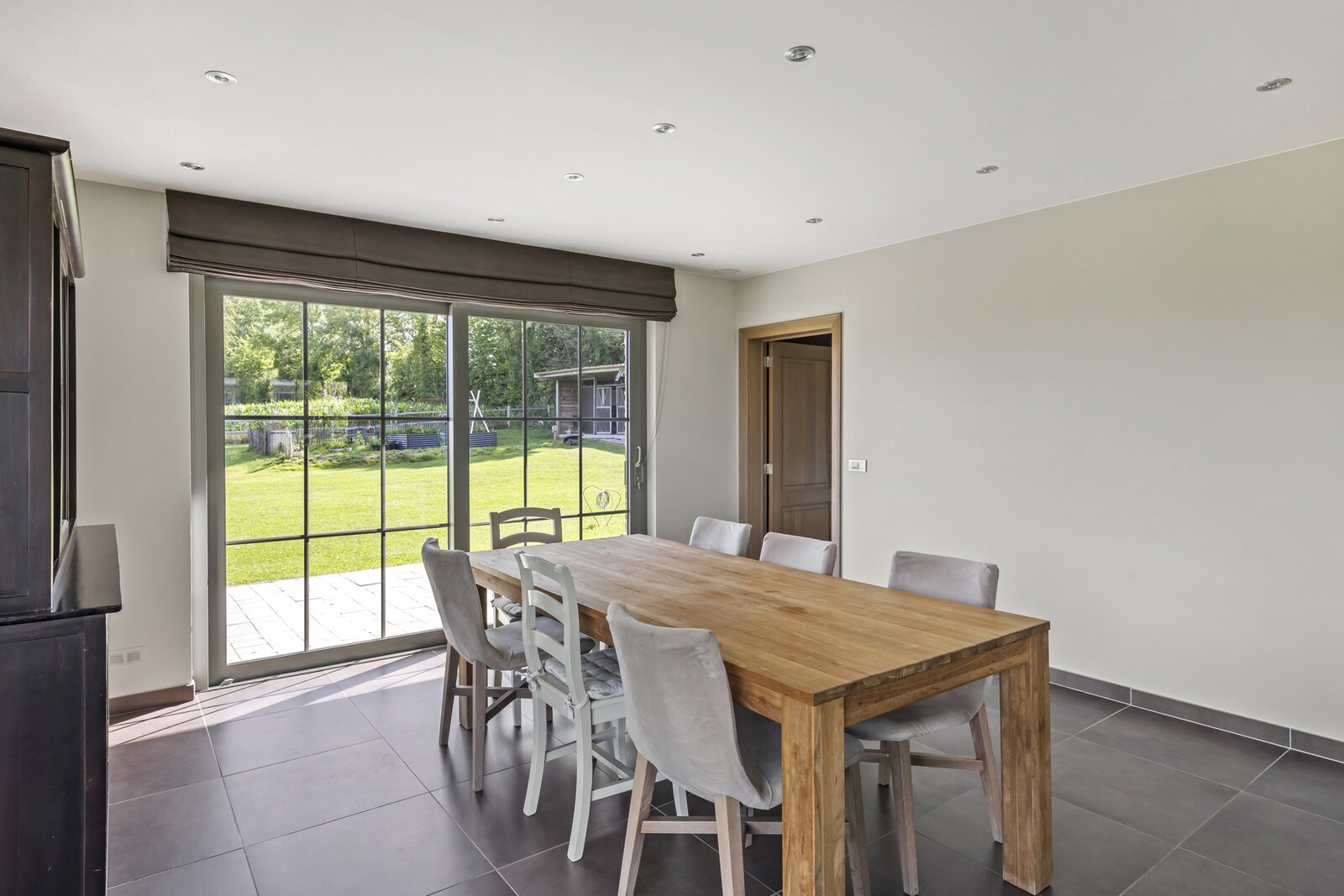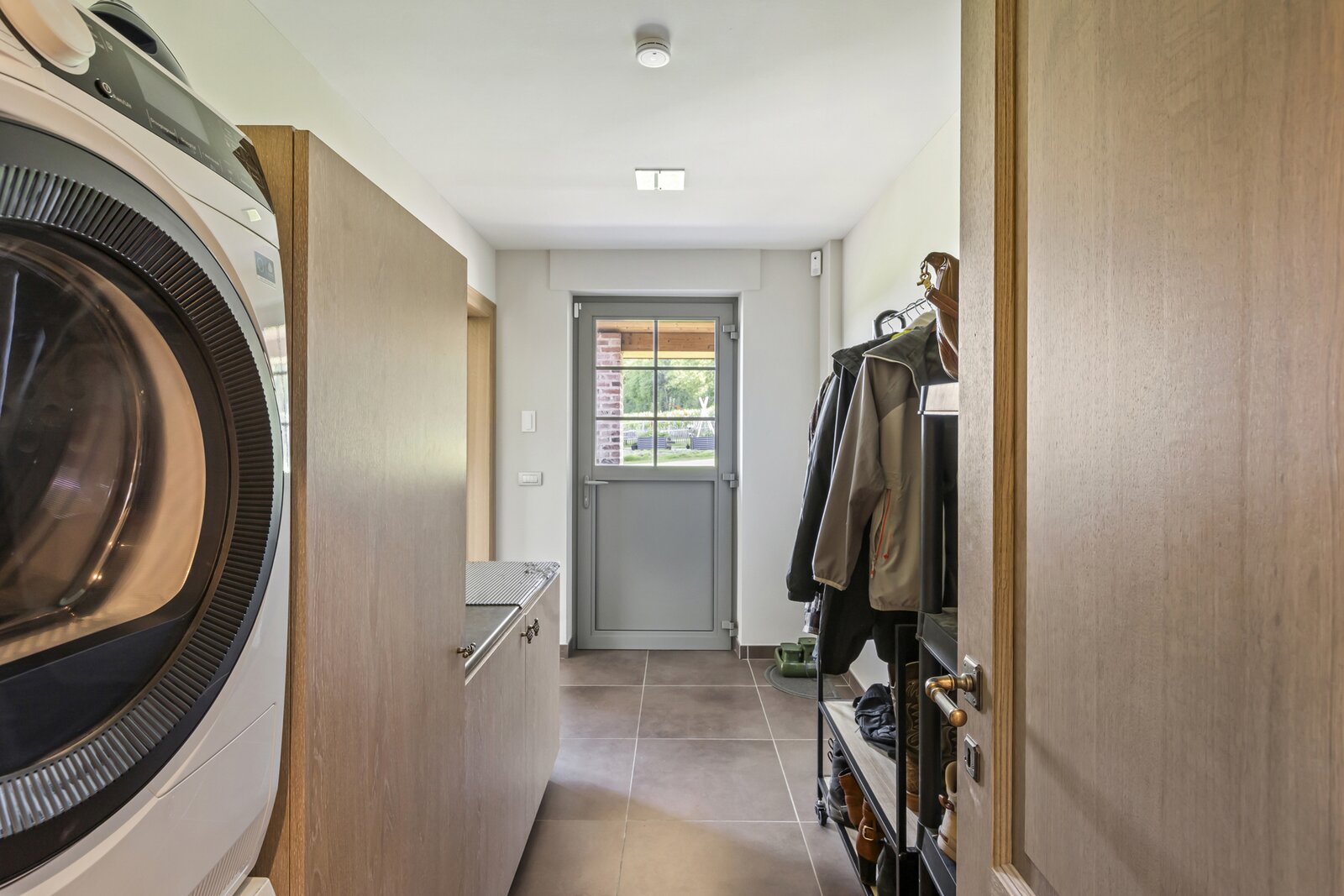 Unieke eigendom op 3.000 m² met 6 slaapkamers waarvan 2 met dressing, 2 badkamers, bureauruimtes en volledig onderkelderd (2,6 m hoog). Ingerichte keuken, vloerverwarming via warmtepomp, zonnepanelen (7.000 kWh), regenwateropvang (70.000 L met UV-filter). Dubbele garage, overdekt terras, aangelegde tuin met waterpartij, 2 paardenboxen. 2 laadpunten, B&B- of kangoeroewoning mogelijk.