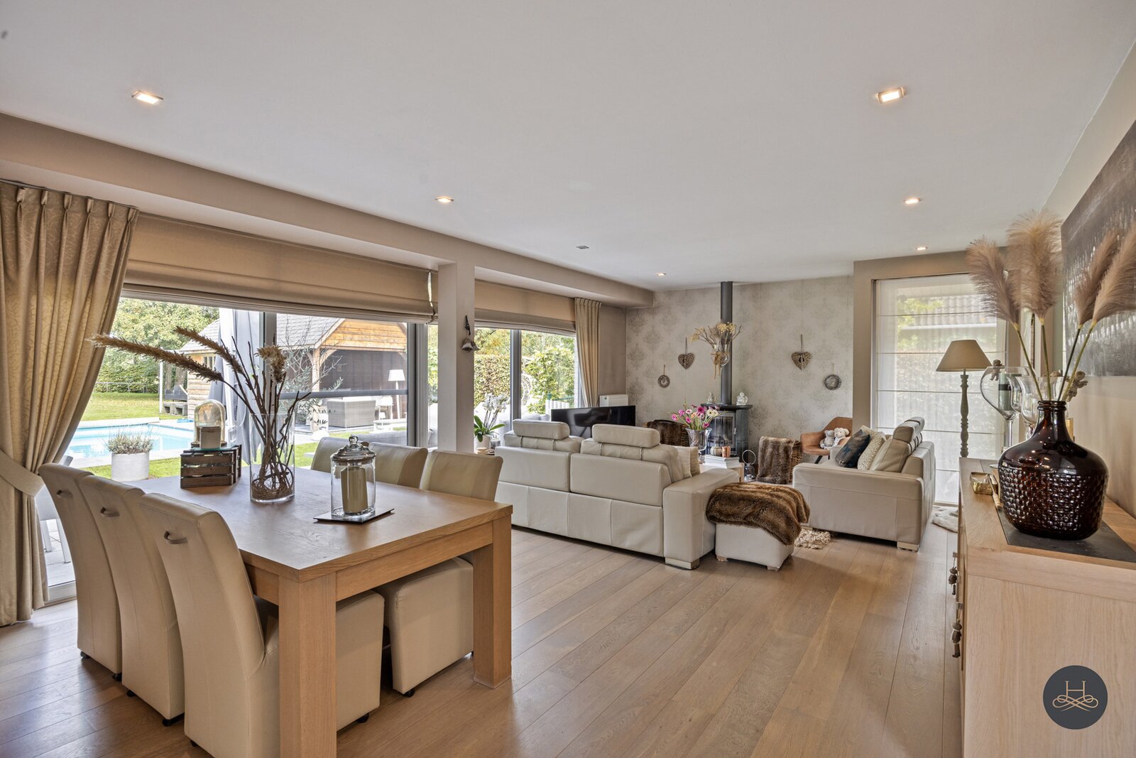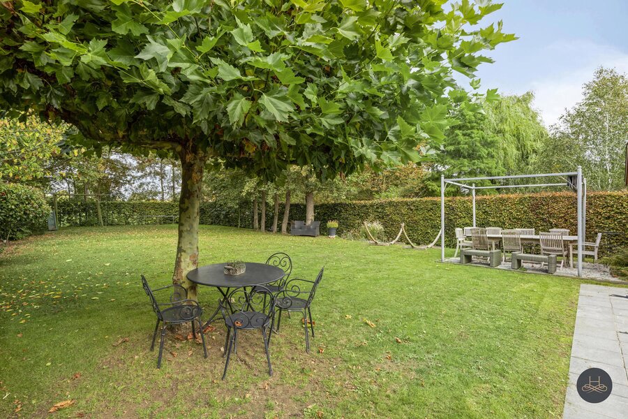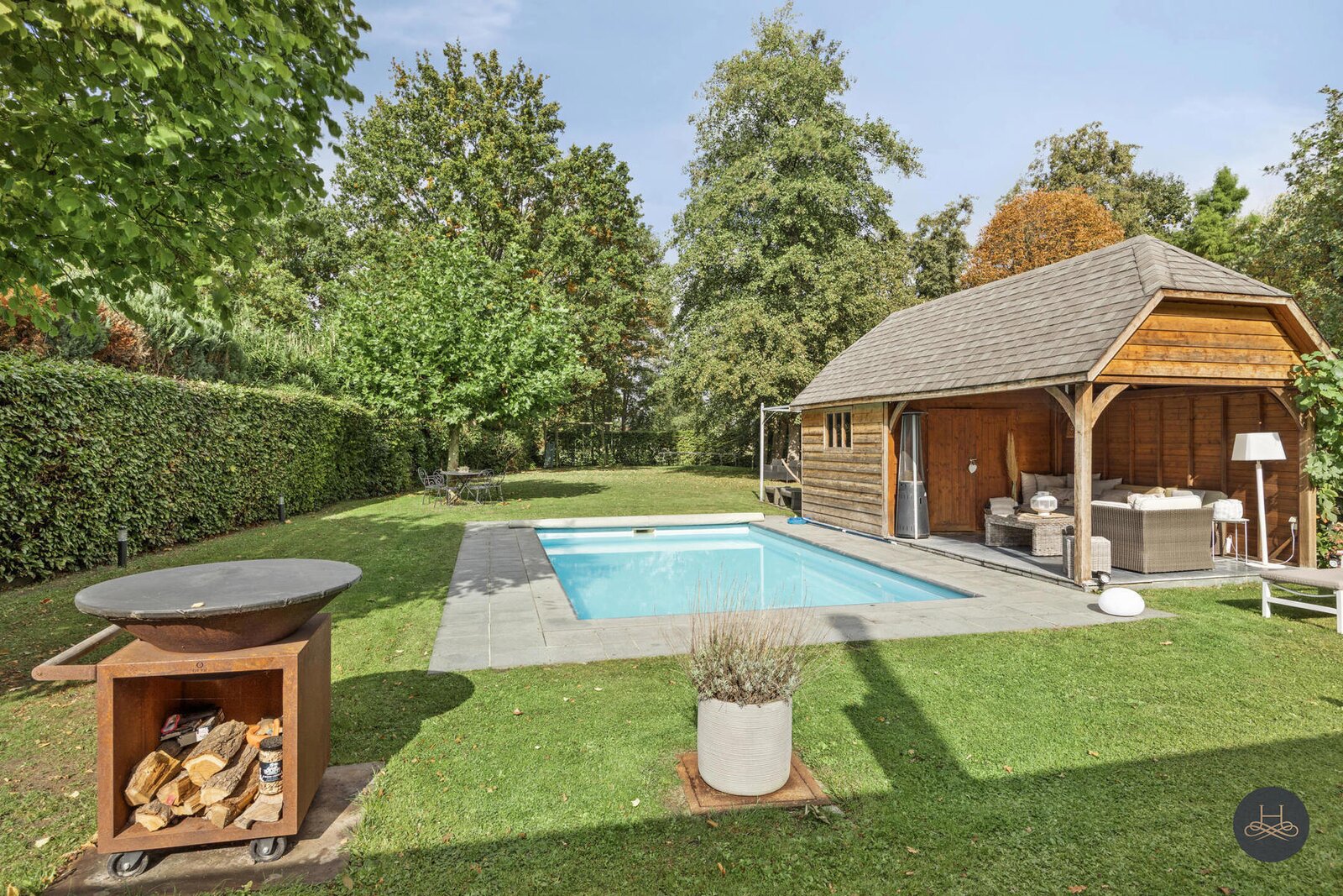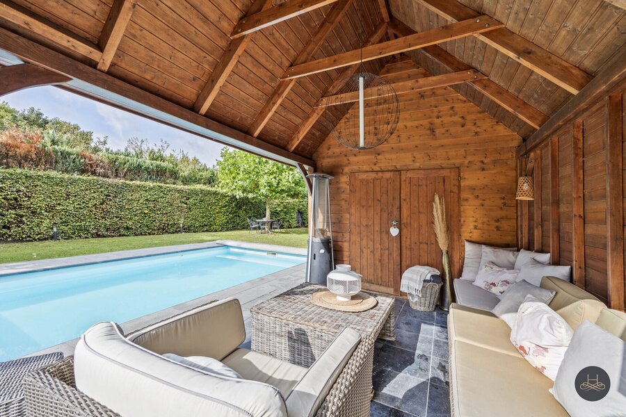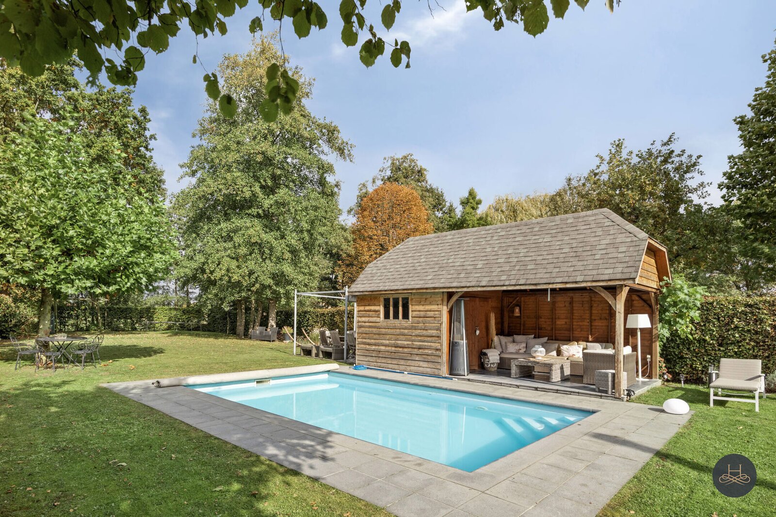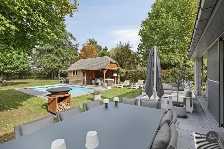 De royale omheinde tuin is een ware troef: een groene, onderhoudsvriendelijke oase met een zwembad, poolhouse, overdekt terras, douche en toilet, perfect om te ontspannen of gasten te ontvangen.
