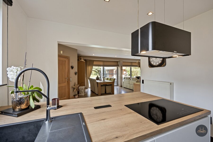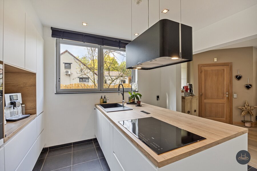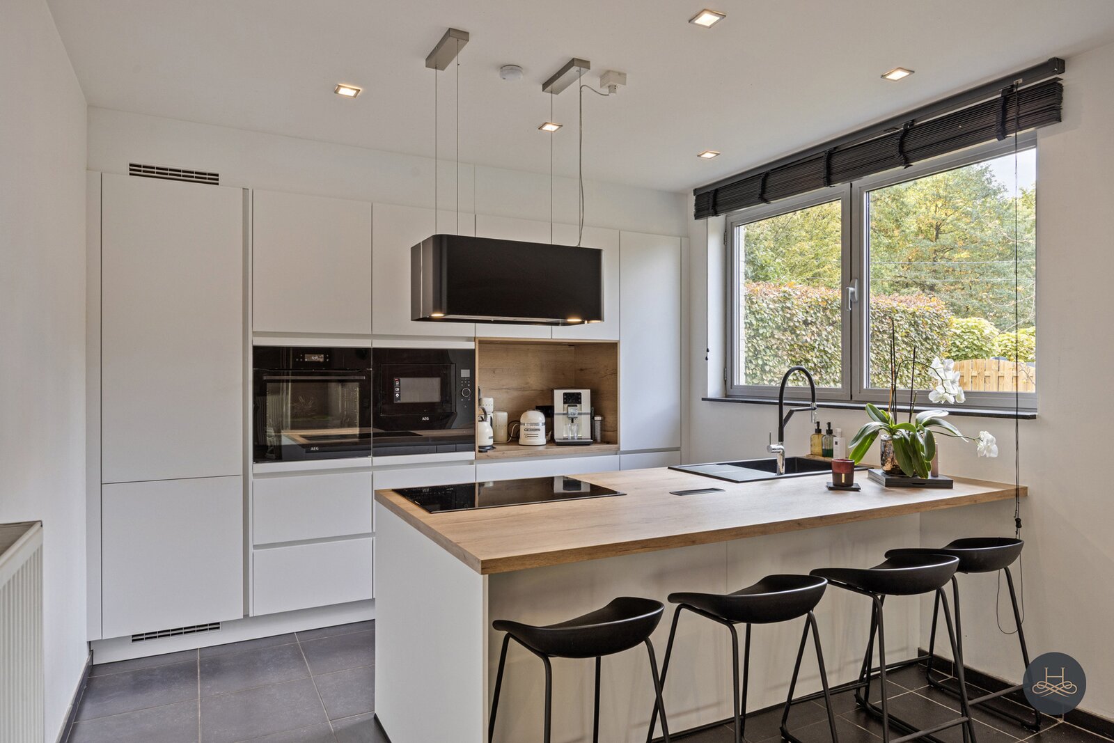 De volledig uitgeruste keuken van 2022 beschikt over moderne toestellen en een mooi keukeneiland en vormt het hart van de woning.