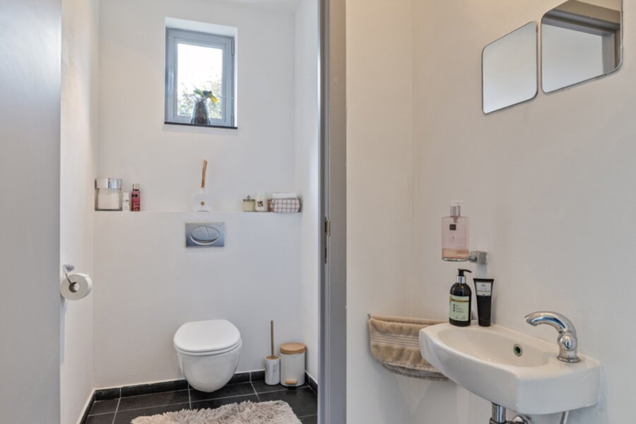 Verder telt de woning vier slaapkamers, één badkamer met ligbad, inloopdouche, dubbele lavabo en maar liefst 4 wc's hetgeen voldoende plaats en praktisch comfort biedt voor het hele gezin.