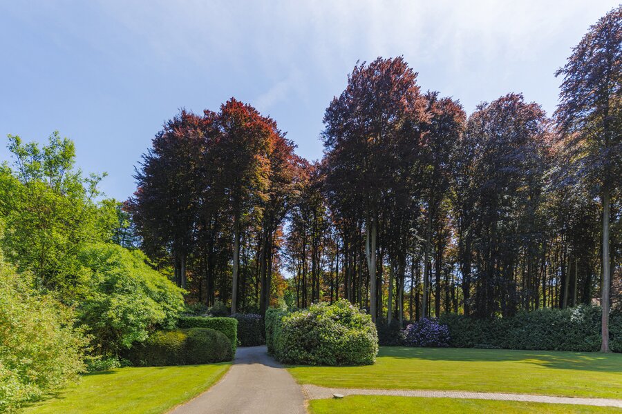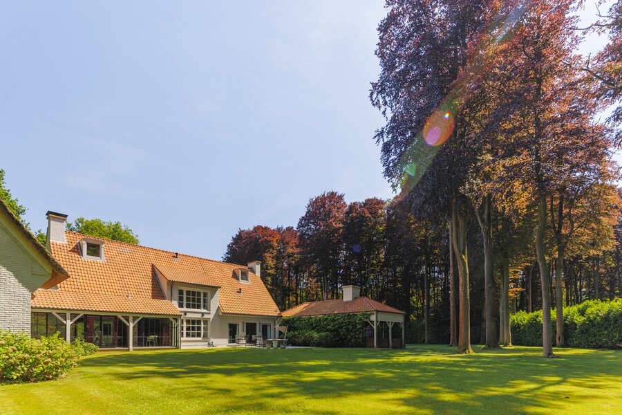 Waar je ook kijkt, door elk raam geniet je hier van het rustgevende zicht op vijftig tinten groen. Ook in je eigen privé parktuin (1 ha) met meerdere terrassen en volgroeide bomen ervaar je een walhalla van rust en groen – één met de natuur.