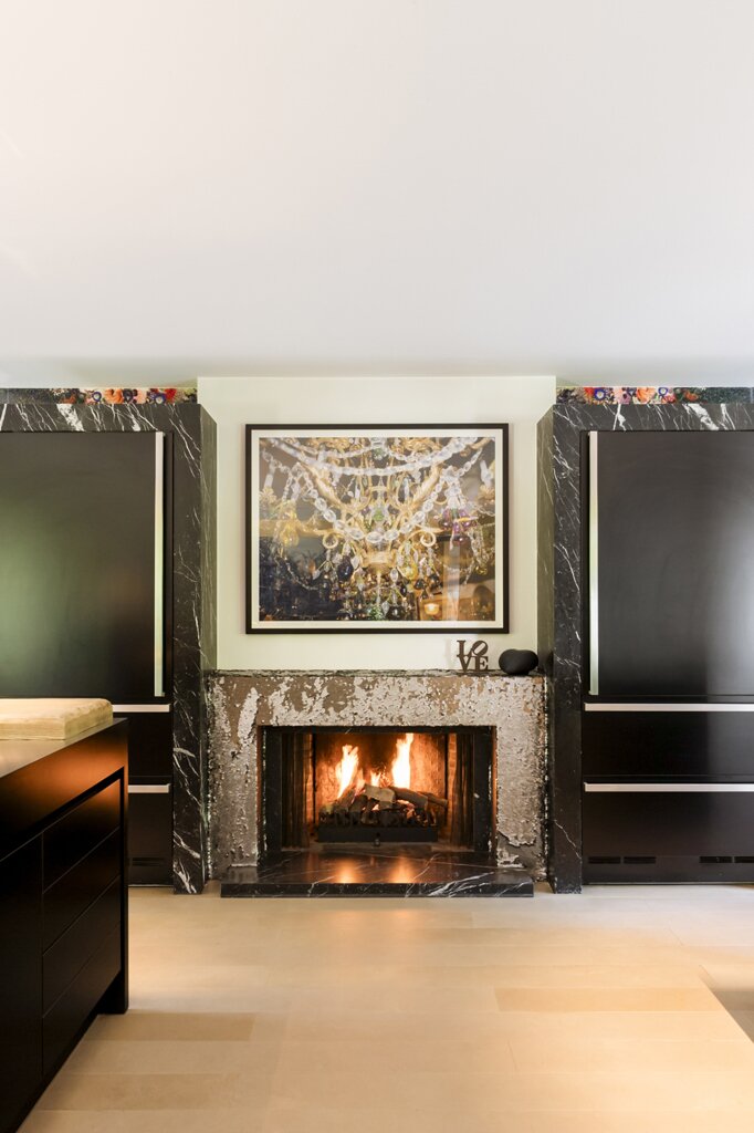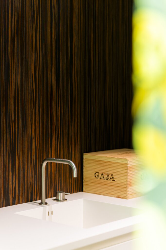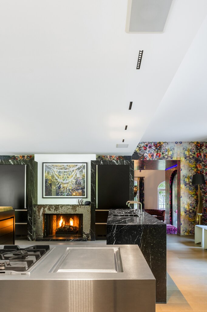 Inkomhal met vestiaire en gastentoilet, met toegang tot het bureau, salon en de riante leefkeuken met top notchafwerking. Kwaliteitstoestellen, L-vormig eiland en zelfs een open haard – dit is koken in de premier league. Ook in de woonkamer met hoge plafonds vind je een heerlijke haard en aansluitend nog een overdekt terras voor apero of pousse-café. Inpandige garage voor drie wagens en kelder.