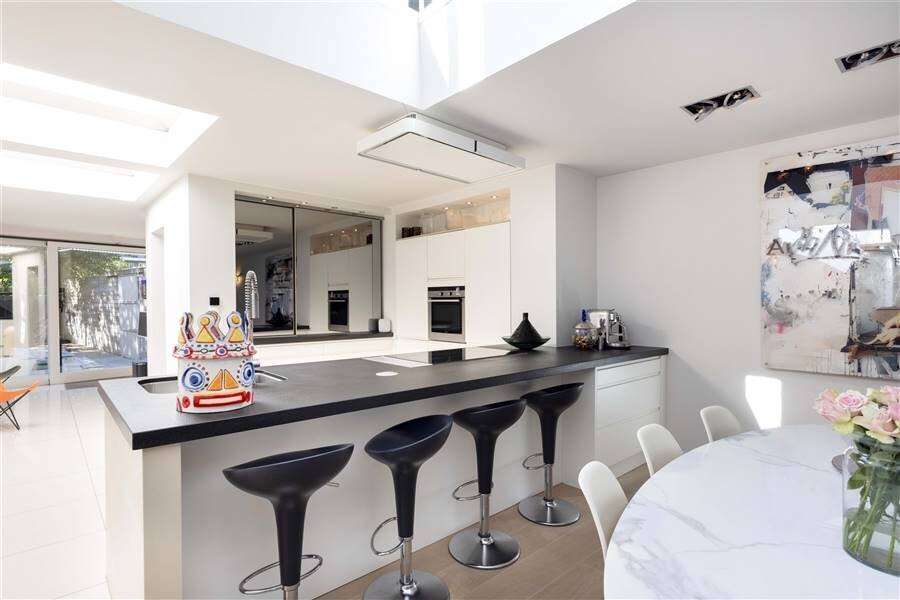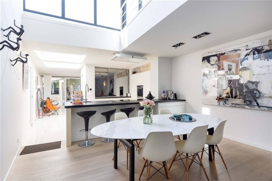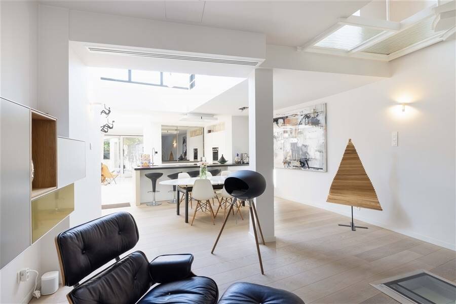+ Grote raampartijen aanwezig wat zorgt voor veel natuurlijk lichtinval - gedeeltelijk voorzien van elektrische zonnewering