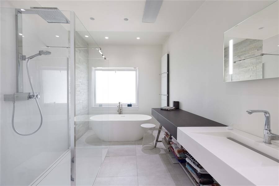 + Ensuite badkamer met op maat gemaakt badkamermeubel, ligbad en ruime inloopdocuhe