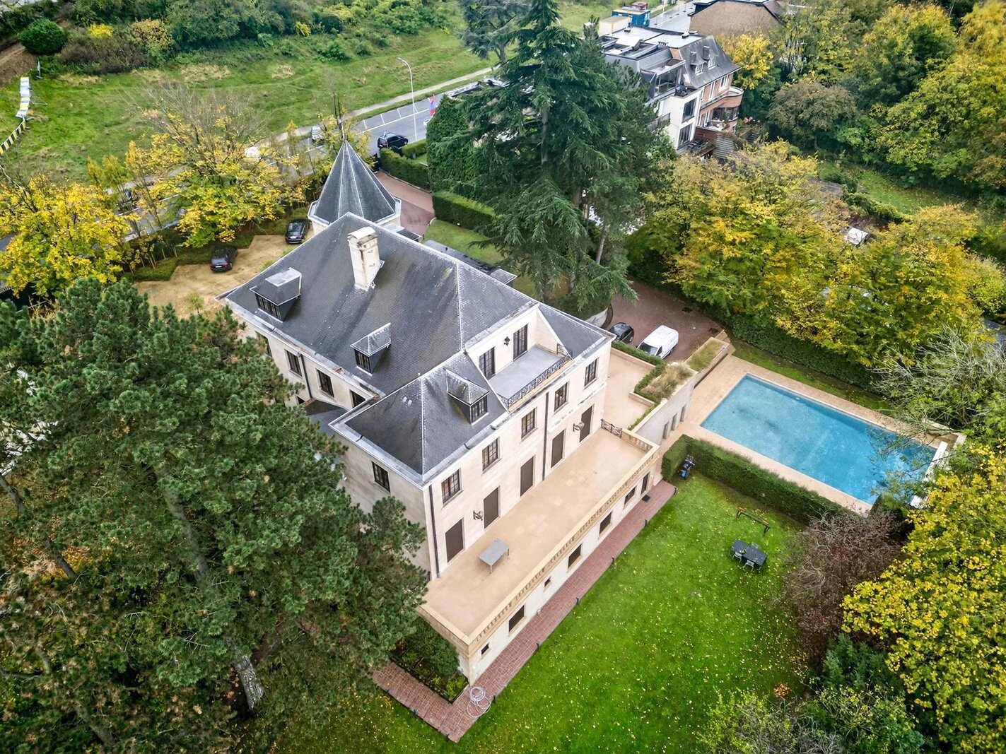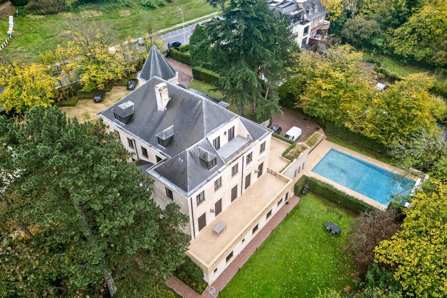 Victoire Junot biedt u in Vorst, aan de rand van een park, in het hart van Brussel, deze prestigieuze en elegante woning in Franse natuursteen aan, gelegen op een perceel van +/- 49 are zonder inkijk. Het heeft een oppervlakte van +/- 1300 m² en biedt op de begane grond een prachtige marmeren hal, een salon met lambrisering en open haard, een grote eetkamer, een kleine eetkamer en salon, een ruime professionele keuken “La Cornue” en een bureau. Op de verdiepingen bevinden zich een prachtige mezzanine, een master suite met salon, slaapkamer, badkamer en dressing, en 5 slaapkamers met eigen badkamer. In de kelder zijn er talrijke kelders, een sauna, een dubbele garage, een polyvalente ruimte en een conciërgewoning met twee slaapkamers en een badkamer. Lift. Verwarmd zwembad (8 x 15 m²) Poort met beveiligde toegang, automatische rolluiken, inbraakwerende ramen op de begane grond. Parkeerplaats voor 10 auto's buiten.