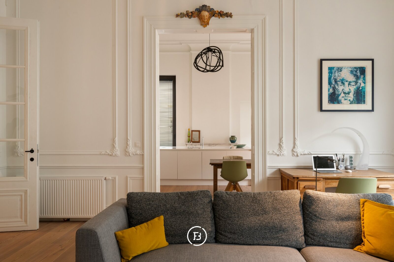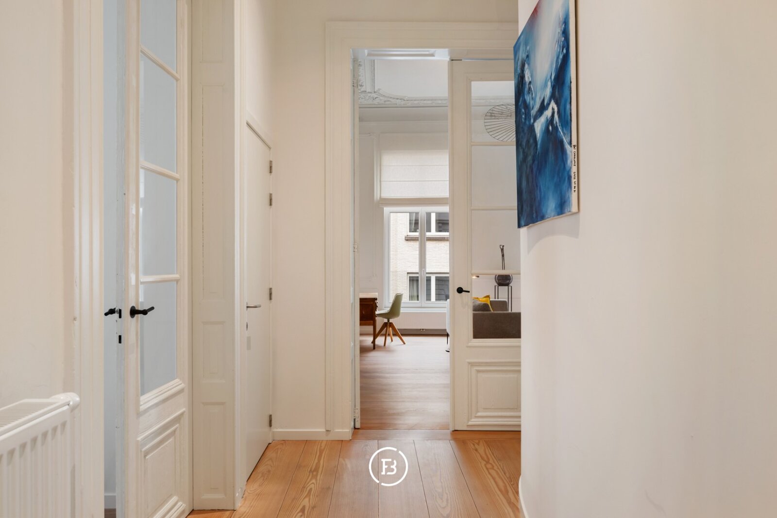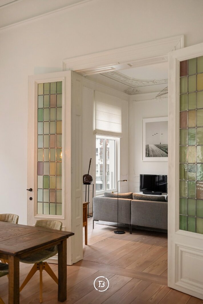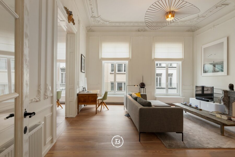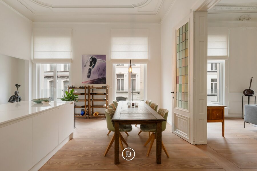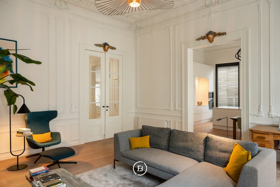 Het appartement beschikt over een royaal woonoppervlak van 134 m² met tal van authentieke elementen die harmonieus worden gecombineerd met hedendaagse accenten, wat resulteert in een unieke en verfijnde afwerking.
