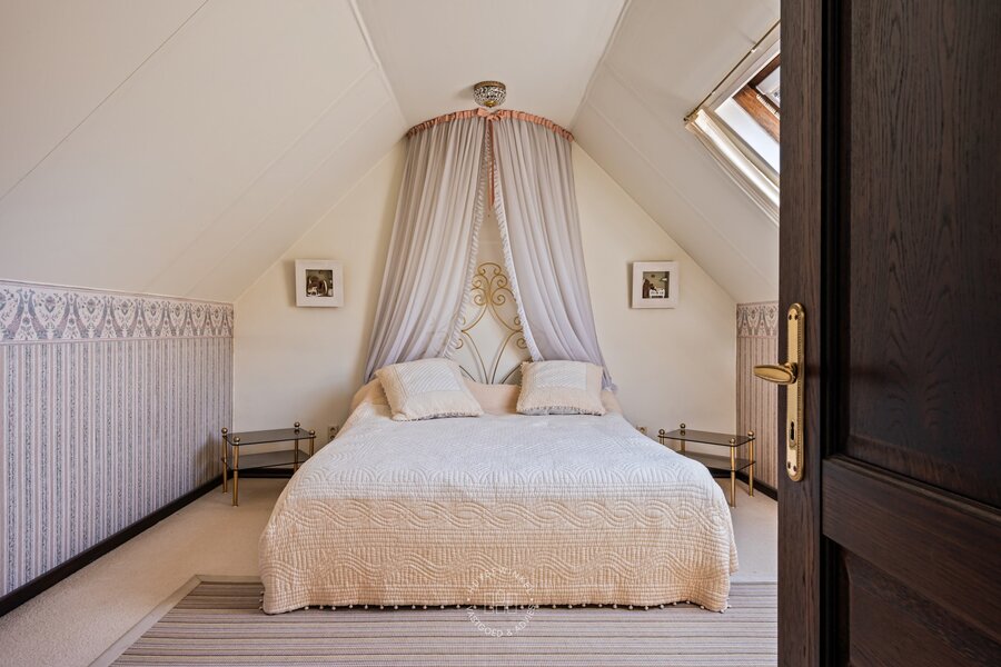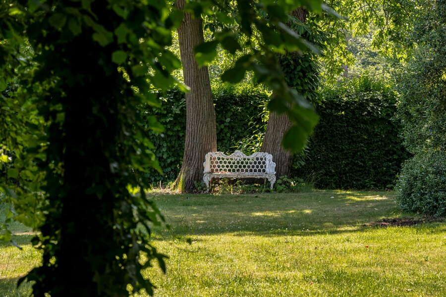 De oorsprong van deze authentieke burgerwoning gaat terug tot de 18de eeuw. In 1995 werd het gebouw volledig gerenoveerd, met veel aandacht voor de authentieke charme en karaktervolle elementen. De volwassen tuin omringt de woning volledig en biedt maximale privacy en een prachtig uitzicht op het omliggende groen.