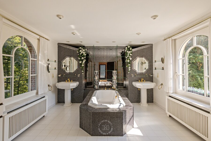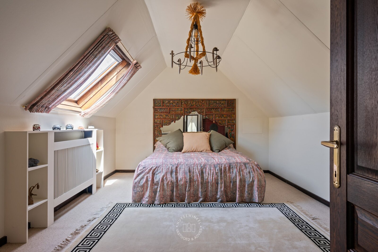 Op de eerste verdieping vindt u een ruime overloop met nachttoilet, een eerste slaapkamer en de badkamer, uitgerust met een ligbad, douche en twee wastafels. De tweede verdieping biedt een centrale bureauruimte en twee bijkomende ruime slaapkamers. Bovendien is de woning volledig onderkelderd, inclusief het terras, wat zorgt voor voldoende opbergruimte.