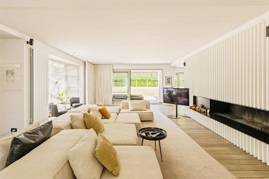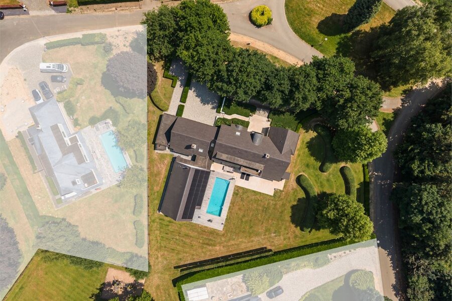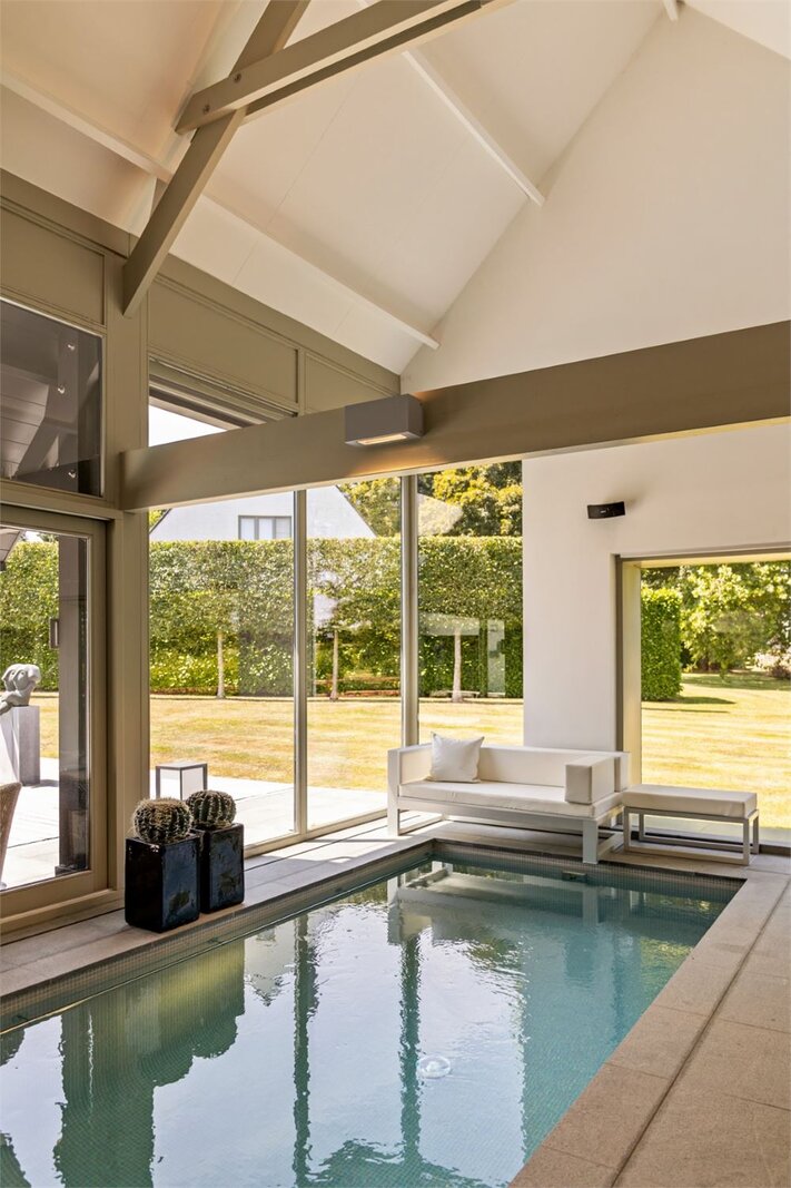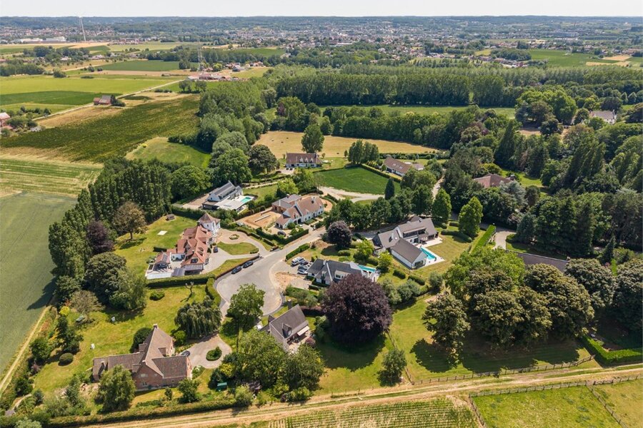 Deze exclusieve villa met tijdloze afwerking is discreet gelegen in het afgesloten en residentiële domein ‘Vlieringenpark’, een oase van rust omgeven door natuur, op slechts 2,5 km van het centrum van Halle en 10 km van Brussel.Een automatische slagboom verwelkomt u in dit unieke stukje paradijs. De villa werd gebouwd op een royaal perceel van 55,8 are en biedt een bewoonbare opp. van maar liefst 583 m², met hoogwaardige materialen en een verfijnde afwerking in elke ruimte. Op het gelijkvloers vindt u een ruime en lichtrijke leefruimte met een open haard van De Puydt en ingewerkte barkast, naadloos verbonden met de eetkamer en de leefkeuken. Deze ruimtes zijn afgewerkt met parketvloeren en worden overspoeld door natuurlijk licht dankzij de grote raampartijen, die een prachtig zicht bieden op de aangelegde tuin. De BULTHAUP-keuken in tijdloos roestvrij staal en hout is uitgerust met een centraal eiland, V-Zug kookplaten en een Gaggenau wijnklimaatkast. Aansluitend is er een praktische bijkeuken/wasruimte en een ruime garage voor drie wagens, met aparte technische ruimte. Daarnaast vindt u op deze verdieping een stijlvolle bureauruimte die rust en focus uitstraalt, een gastentoilet met vestiaire én een luxueuze wellnessruimte met indoor zwembad, sauna, jacuzzi en doucheruimte.