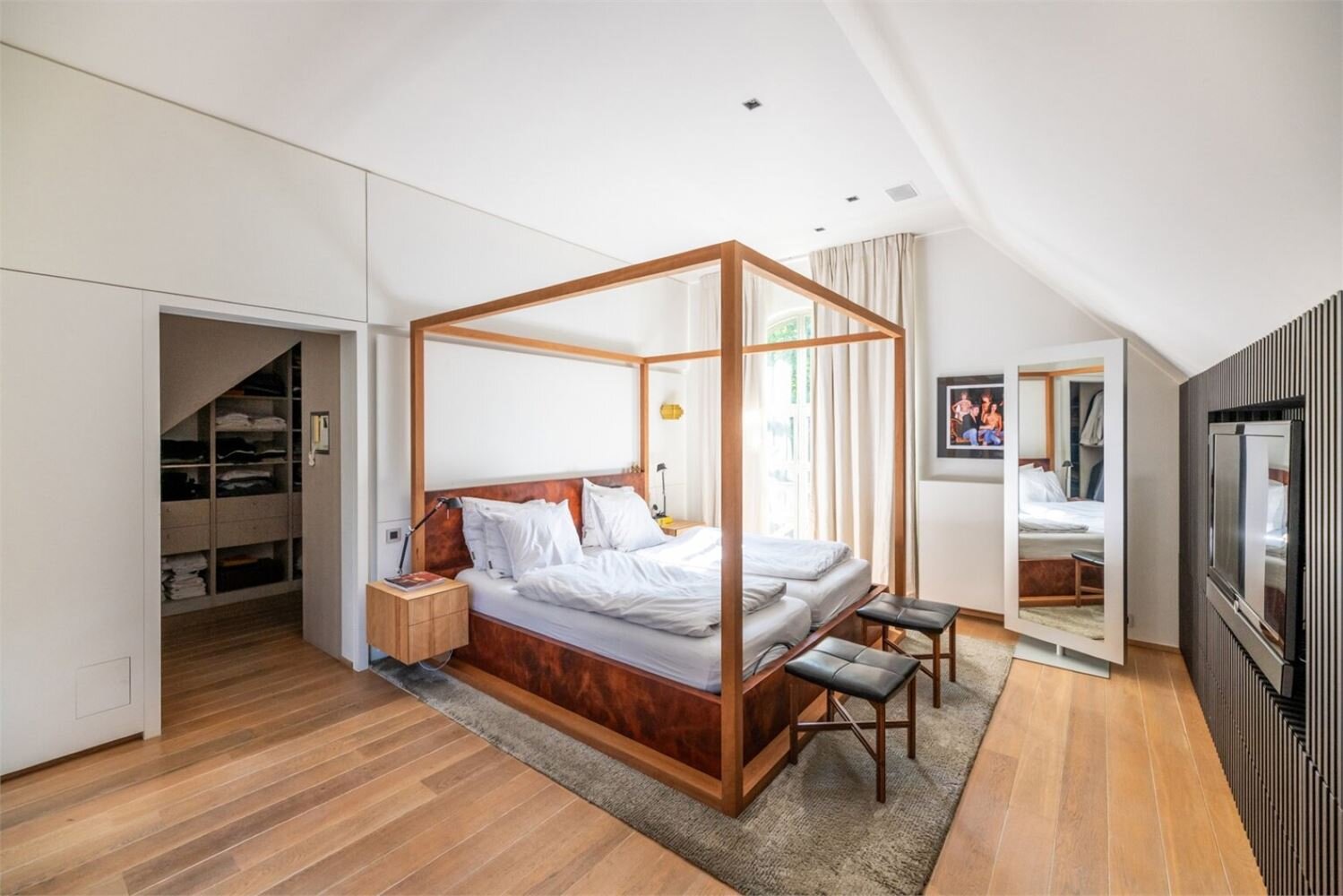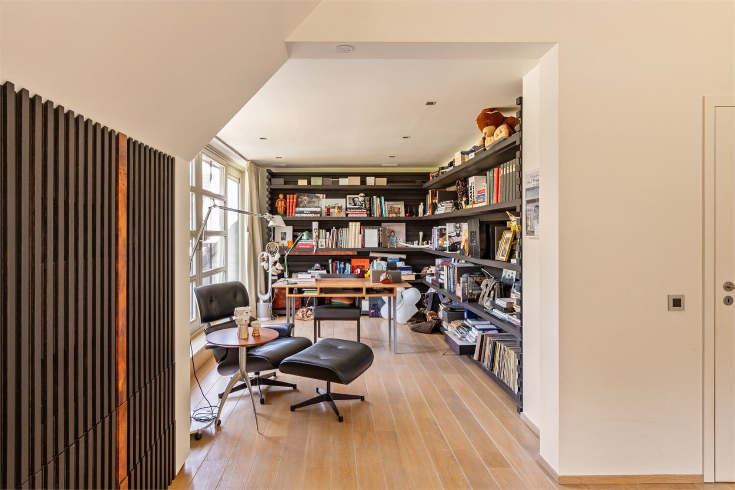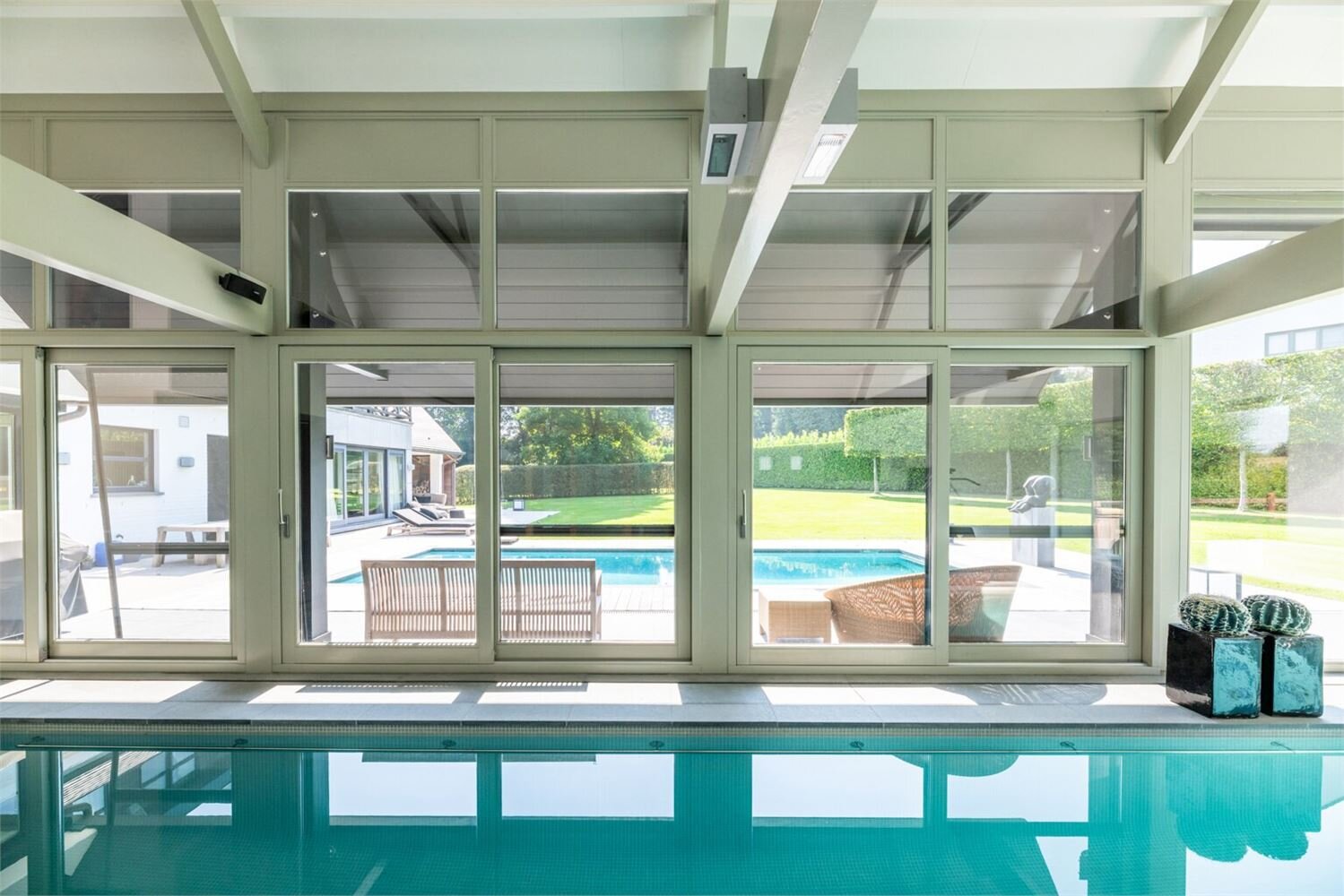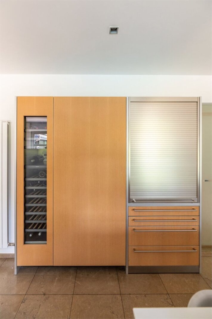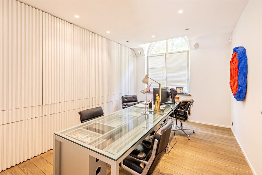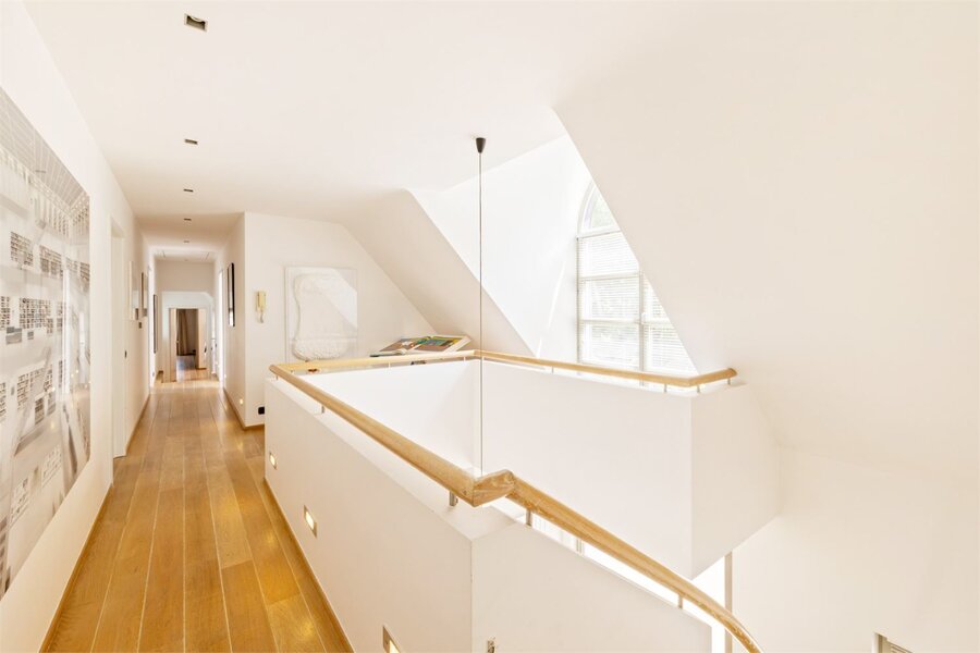 De zolder is toegankelijk via een automatisch uitschuifbare trap.De zuidwestgerichte tuin is volledig aangelegd en voorzien van een royaal zonneterras en een 2E zwembad. Overal in het interieur vindt u maatwerk en elegant design van Più, onder leiding van designer Filip Tack.