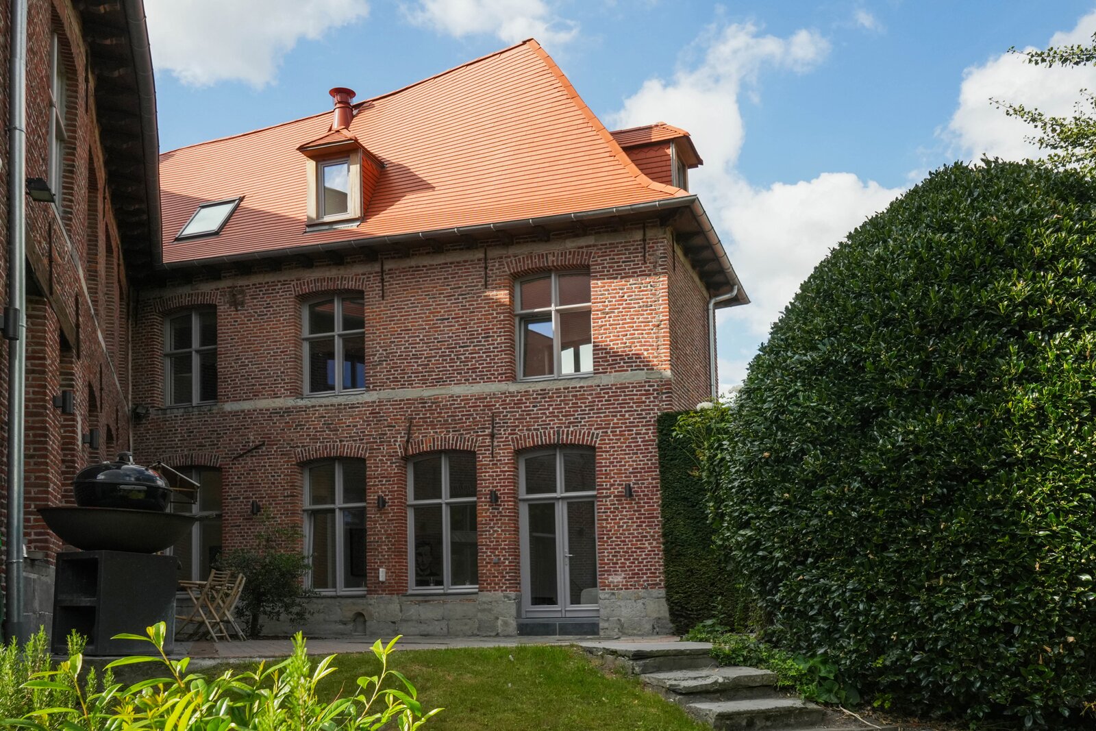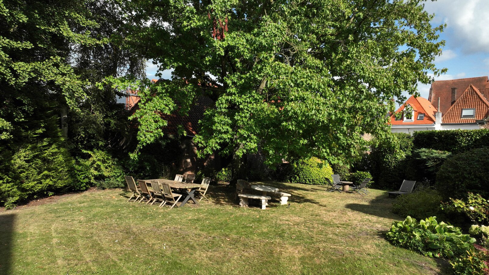 Exterieur: Zeer grote tuin met toegang tot de straat, parkeerplaats en garage, op het zuiden.