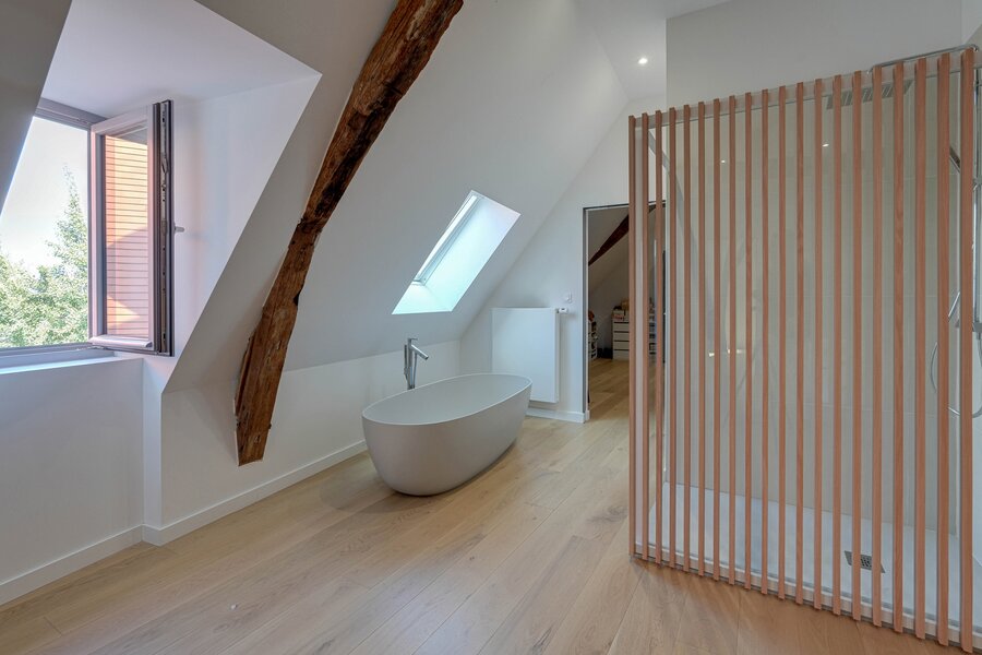 Kenmerken: Complete renovatie van het gebouw in 2021, houten ramen met dubbele beglazing, vloerverwarming (warmtepomp), massieve parketvloeren, thermodynamische boilers, dubbel-flow ventilatie, domotica, videofoon...