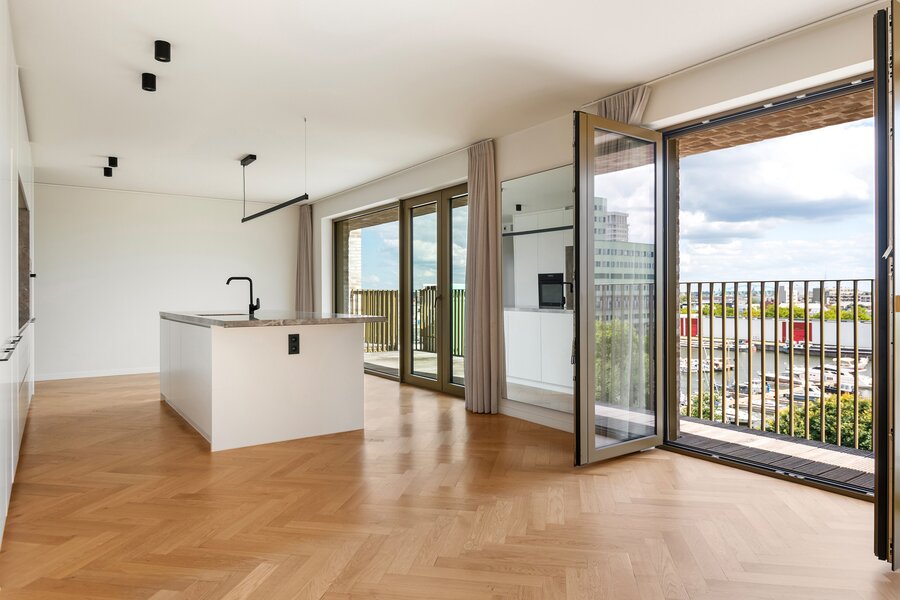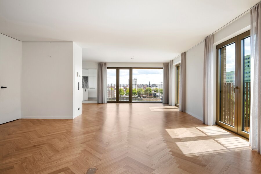 Het privatieve dakterras bevindt zich eveneens op de bovenste verdieping en is bereikbaar vanuit meerdere slaapkamers en de hal. Het appartement is uitgerust met airconditioning en beschikt over een fietsenberging. Verder zijn er ook zonnepanelen aanwezig wat zorgt voor het EPC A en een gunstigere energierekening. Bovendien is er de mogelijkheid om twee autostaanplaatsen, beide met laadpaal aan te kopen (à €50.000 per stuk). Een penthouse dat uitblinkt in licht, ruimte en uitzicht, ideaal voor wie in alle privacy wil wonen op een unieke plek in de stad.