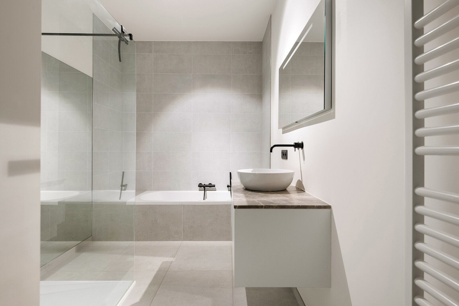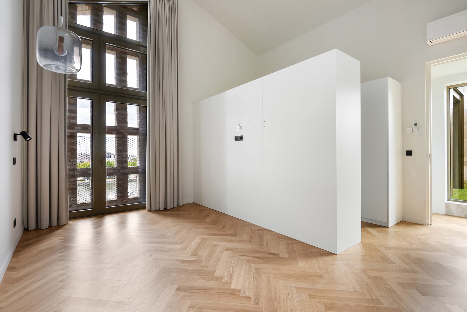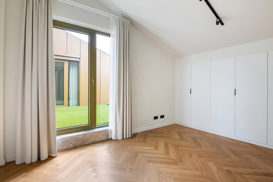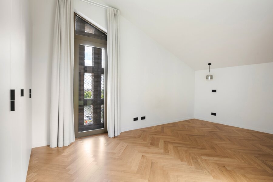 Met zowel trap als lift bereikt u moeiteloos de twee verdiepingen van dit penthouse. Hier bevinden zich de ruime en elegant ingerichte slaapkamers, waarvan sommige profiteren van een plafondhoogte tot wel 5 meter, wat een bijzonder ruimtelijk gevoel geeft. De master bedroom beschikt over een aansluitende inloopdressing en een en suite badkamer met bad, dubbele lavabo en inloopdouche. Daarnaast is er nog een tweede gastenbadkamer aanwezig.