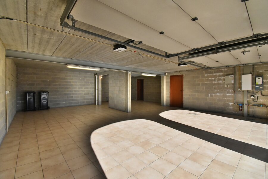 Kelderverdieping: garage voor 4 wagens (+/-76m²) - wijnkelder (+/-8m²) - berging (+/-7m²).