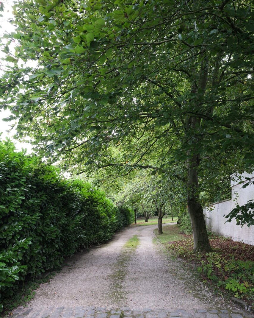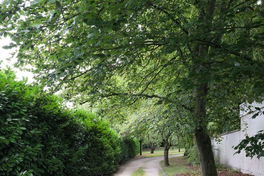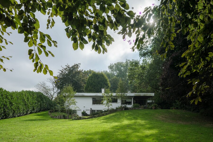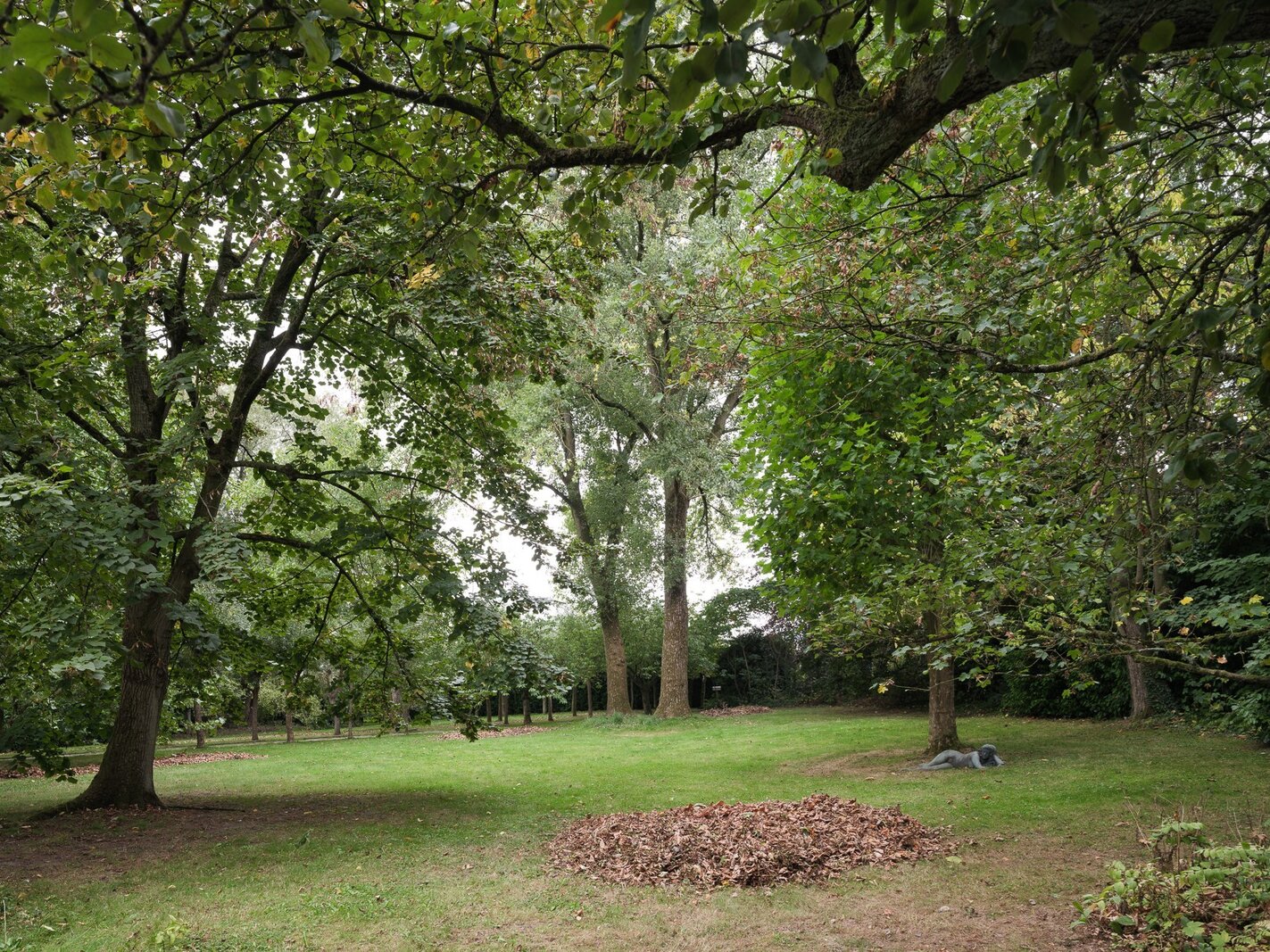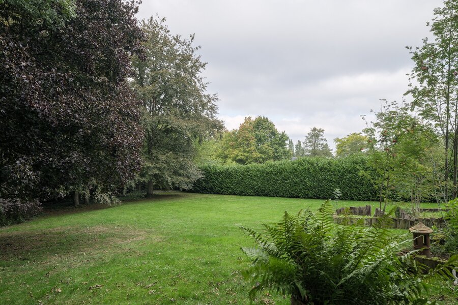 De lange oprijlaan, kronkelend tussen beuken, kastanjes en fruitbomen, leidt naar een woning die zich niet opdringt, maar uitnodigt. Hier klinkt enkel het ruisen van bladeren, het gefluister van wind. De volwassen parktuin omarmt de woning en kleurt elk seizoen anders – een levend schilderij dat blijft bewegen.