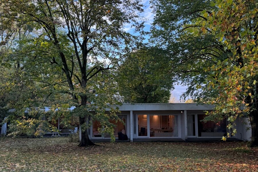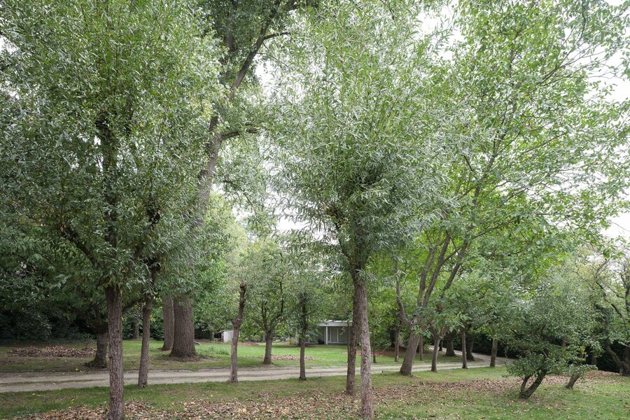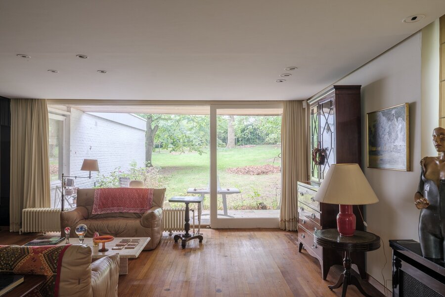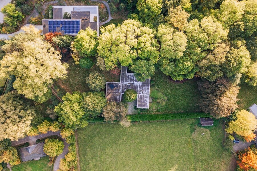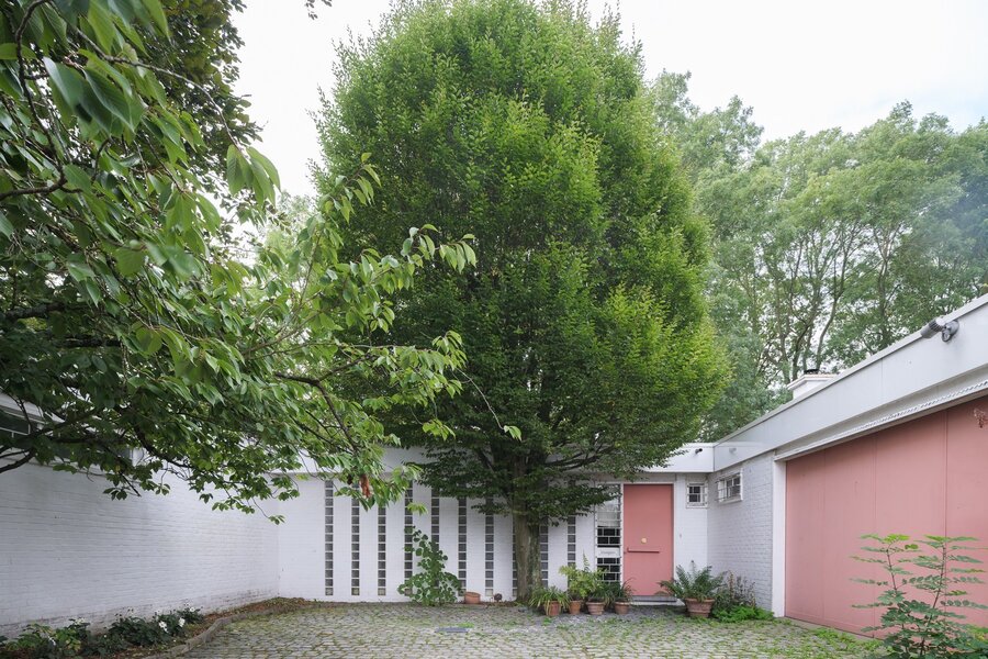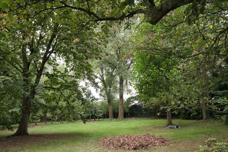 De lange oprijlaan, kronkelend tussen beuken, kastanjes en fruitbomen, leidt naar een woning die zich niet opdringt, maar uitnodigt. Hier klinkt enkel het ruisen van bladeren, het gefluister van wind. De volwassen parktuin omarmt de woning en kleurt elk seizoen anders – een levend schilderij dat blijft bewegen.