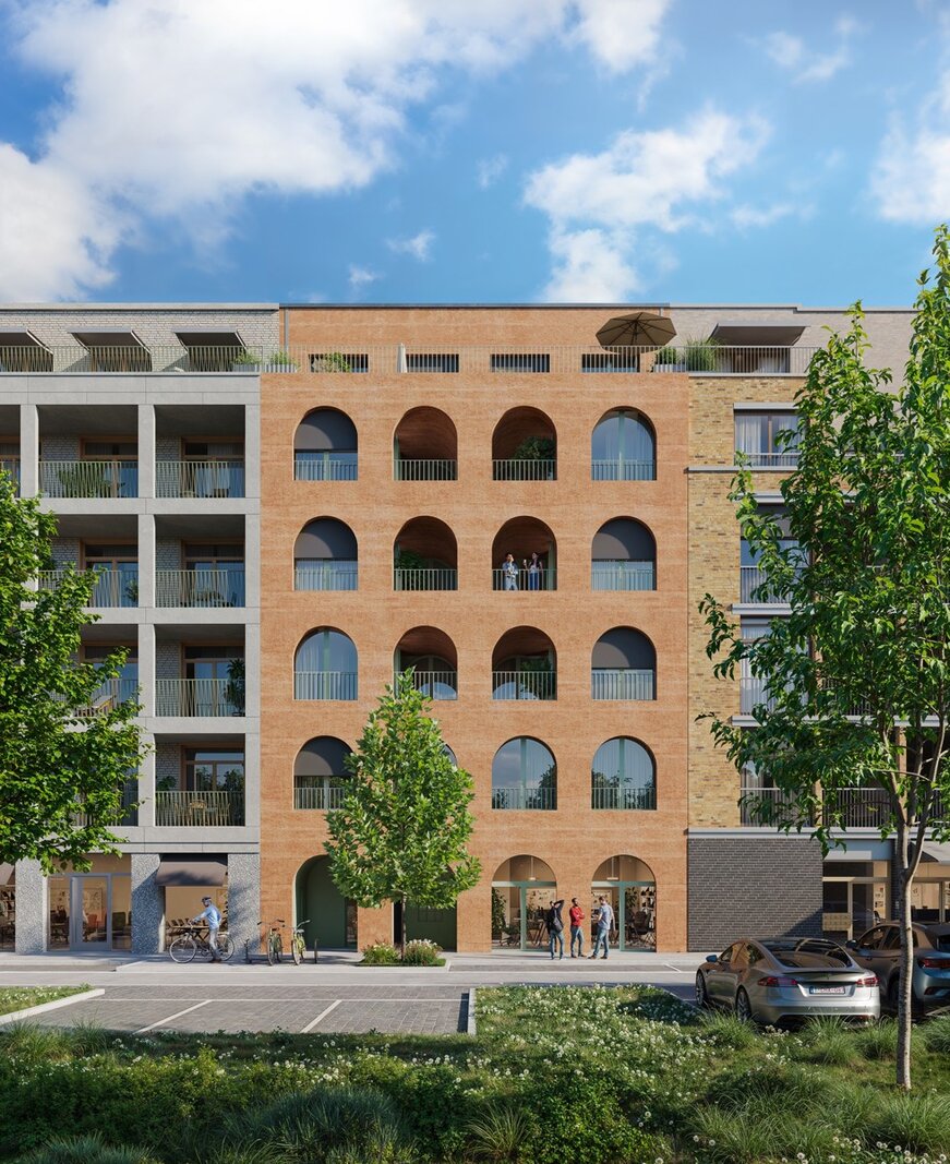 De gevel vertelt het verhaal van de toekomst: een sculpturaal en monolithisch ontwerp in hout en kalkhennep, volledig biobased en uitzonderlijk duurzaam. De ronde bogen geven een speels accent en creëren lichte, open ruimtes. Zo combineert LIEVEN architecturale schoonheid met ecologisch en economisch bouwen.
