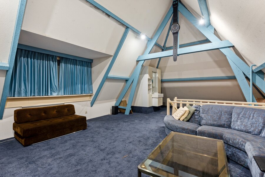Verdieping 2: via een vaste trap bereiken we een ruime polyvalente ruimte, ingericht als slaapkamer 4 met lavabo. Verder is er nog een aparte berging.