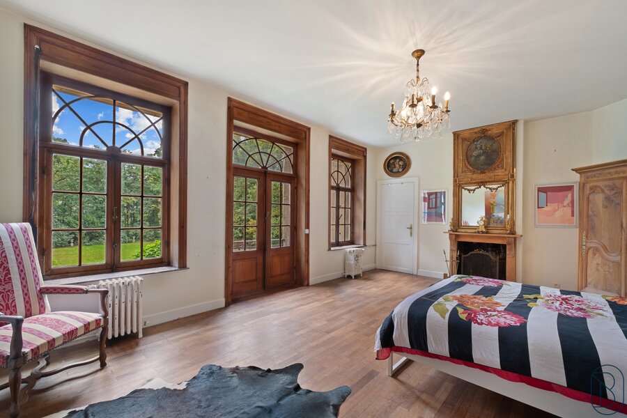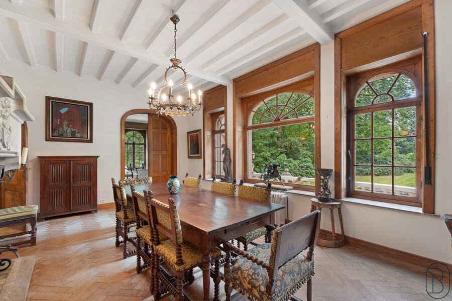Prachtig kasteel gelegen te midden van een domein van meer dan 8 hectare, met stalgebouwen (185 m²), bijgebouwen, bos, weiden en park.