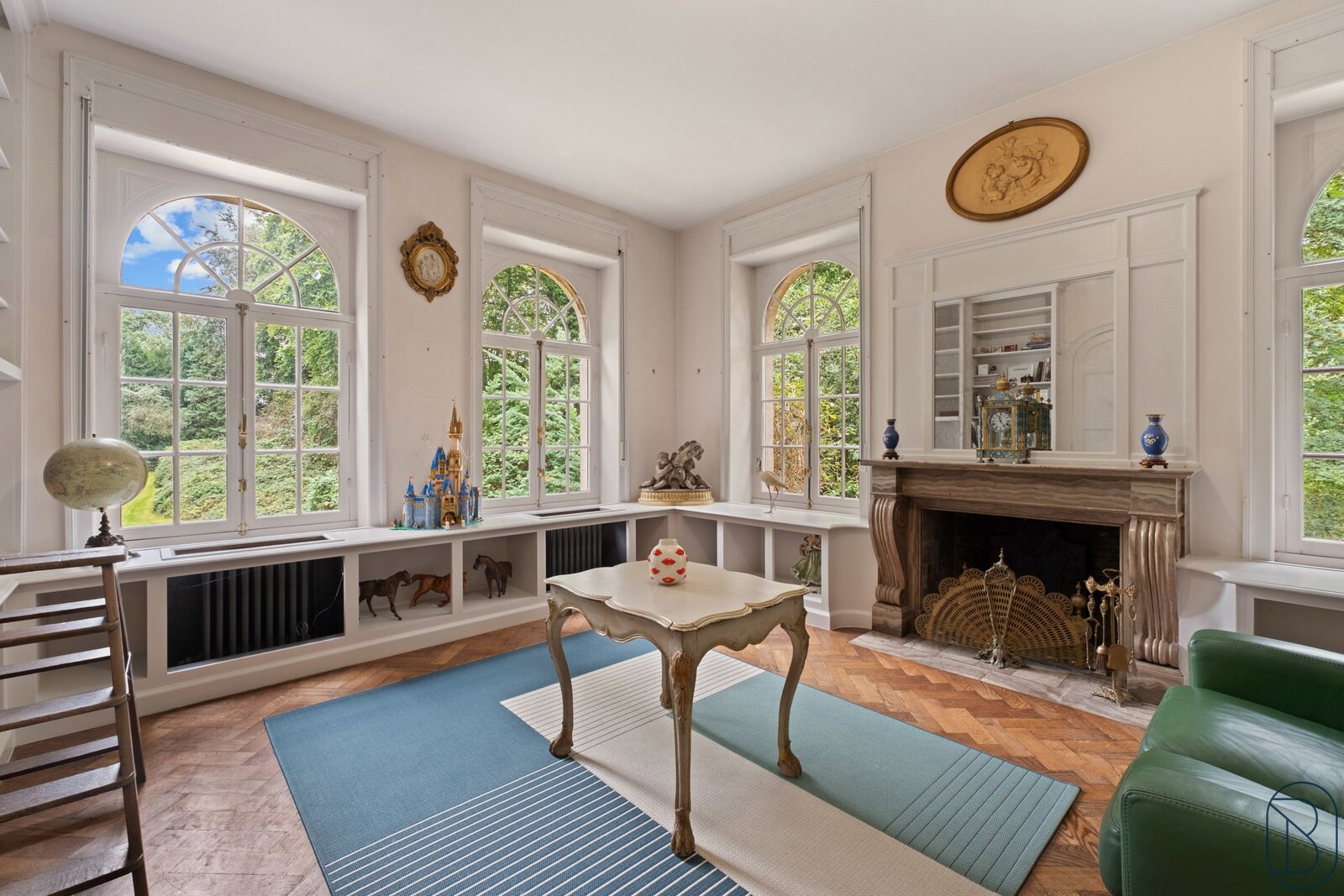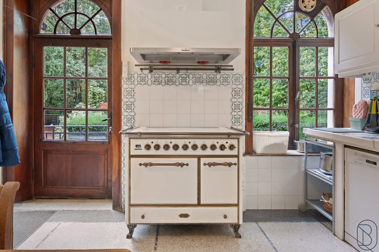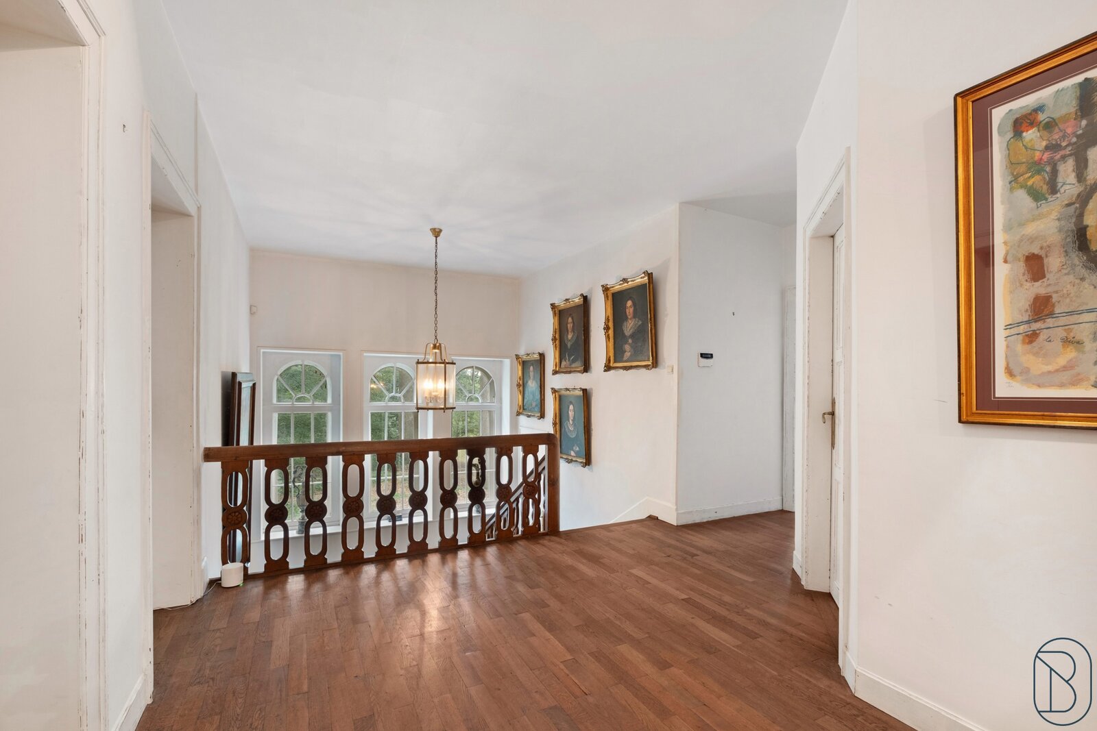 De woning omvat op het gelijkvloers een mooie inkomhal, salon en leefruimte, ingerichte keuken, bibliotheek en bureau.