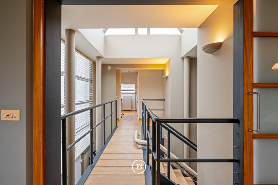 Het gelijkvloers omvat een ruim woongedeelte met vernieuwde keuken afgewerkt met hoogwaardige materialen en toestellen, evenals een apart praktijkgedeelte (apart perceelnummer) met eigen inkom, wachtkamer, cabinet en secretariaat (mogelijkheid tot uitbouw van een tweede dokterskabinet vergund in 2002). Op de verdieping bevindt zich een master bedroom met dressing, 3 kinderkamers, een extra strijkkamer en wasplaats (eventueel om te vormen tot tweede badkamer). De polyvalente ruimte biedt extra mogelijkheden, dit alles met een fenomenaal uitzicht.