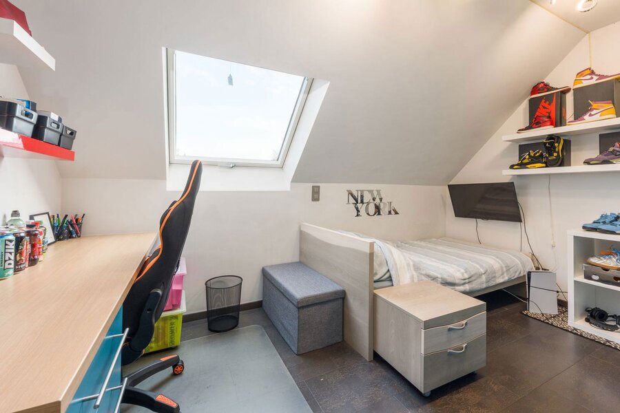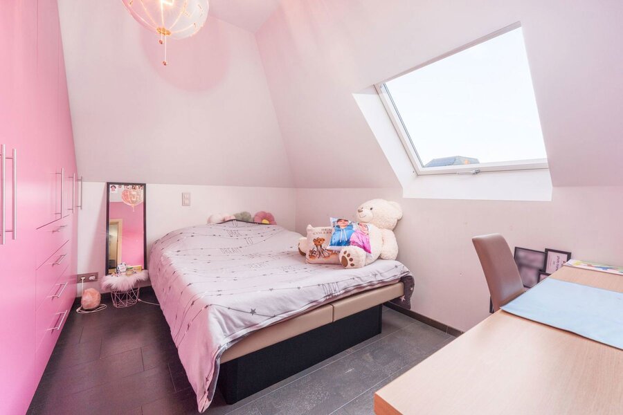 De volledig ingerichte zolder verrast met extra ruimte: vandaag een slaapkamer, morgen een hobbyruimte, fitness, speelkamer of multifunctionele ontspanningsruimte. Aan mogelijkheden geen gebrek.