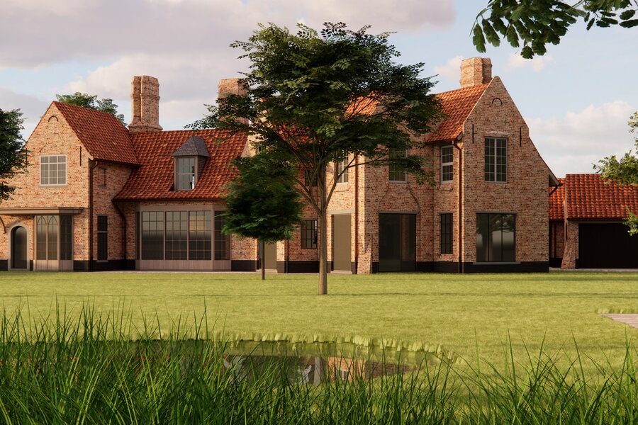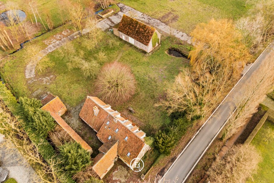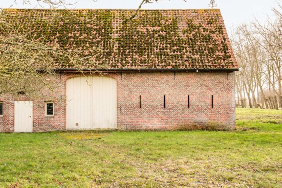 Op een uitzonderlijk rustige en unieke locatie bevindt zich dit landhuis met bijgebouw en ruime schuur van 150 m². Deze eigendom wordt aangeboden met reeds goedgekeurde plannen van de gerenommeerde architect Bernard De Clerck – een sterke troef voor wie kwaliteit en architecturale verfijning hoog in het vaandel draagt.