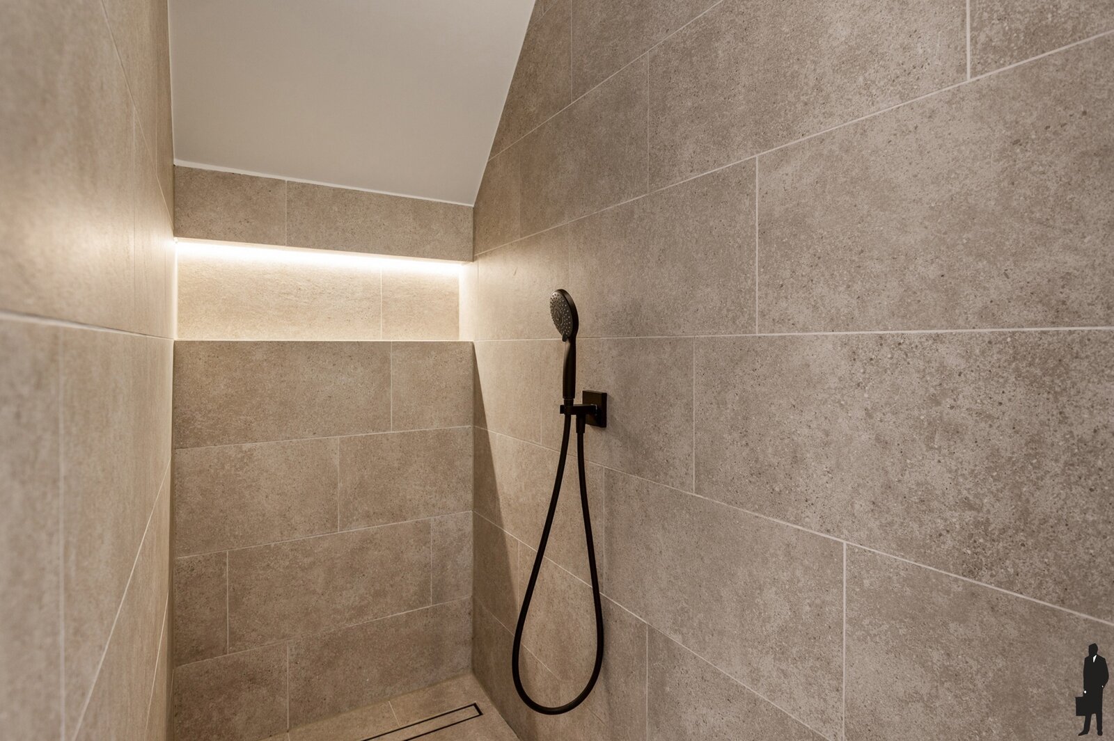 - een douchekamer met lavabo (Villeroy & Boch), en inloop-regendouche,