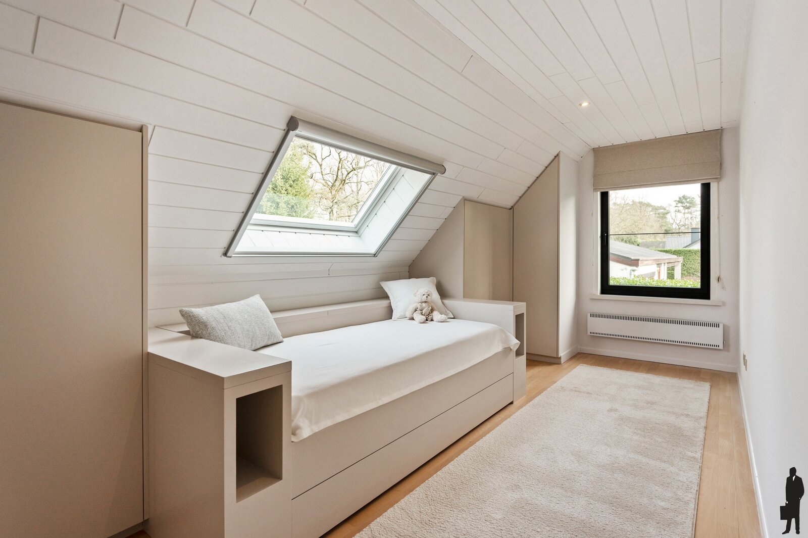 - een vierde slaapkamer op parket met ingemaakt bed en kast,