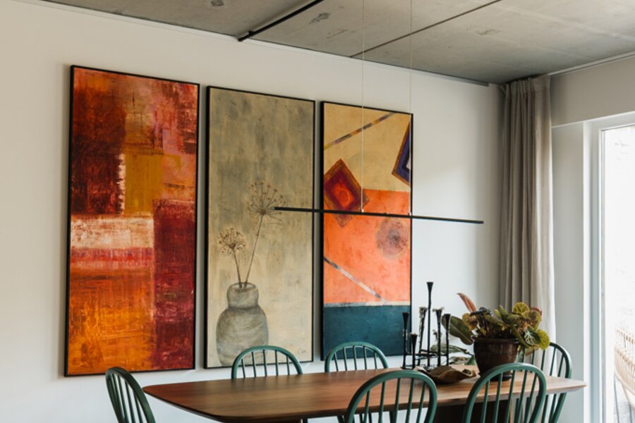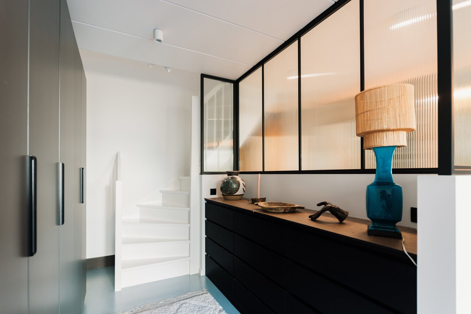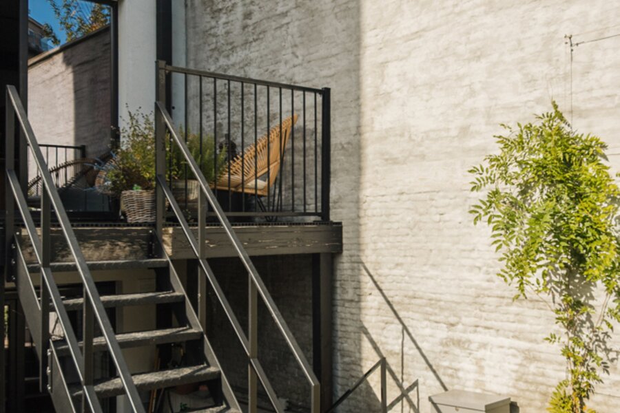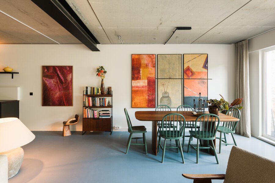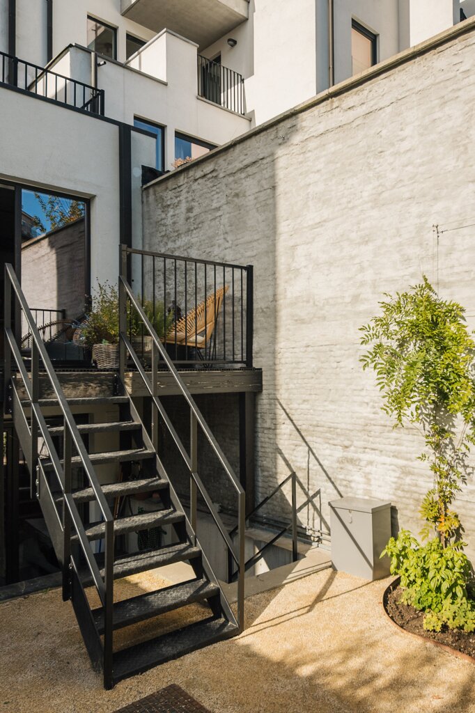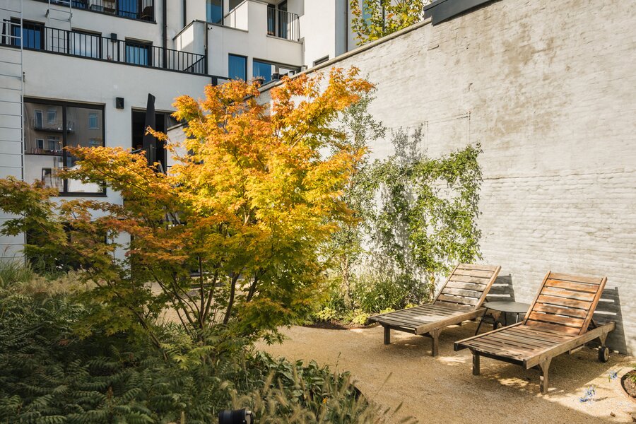 Een oase van stilte en licht, ruim en toch geborgen als een cocon: zo omschrijven de huidige bewoners dit uiterst gezellige appartement. Het ligt op de beneden- en eerste verdieping van een kleinschalig gebouw en voelt meteen uitnodigend.