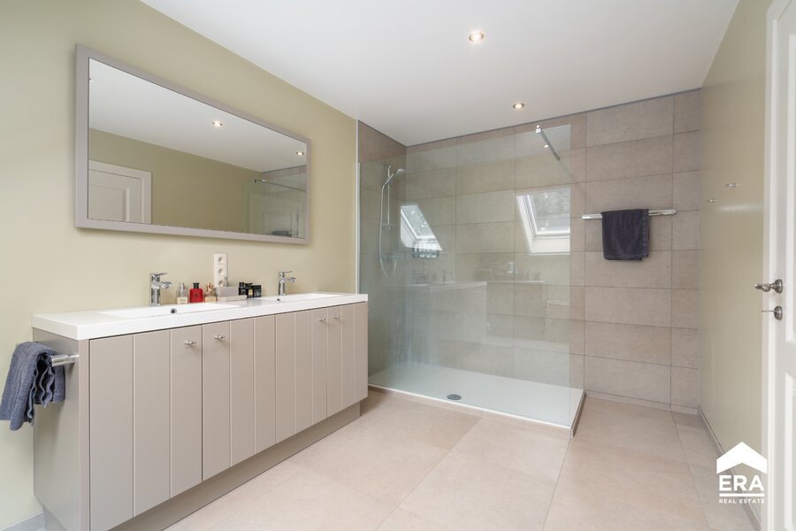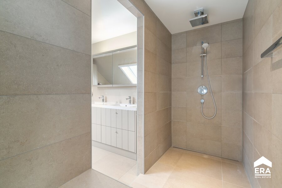 2 stijlvolle badkamers, elk met inloopdouche, dubbele wastafel en toilet