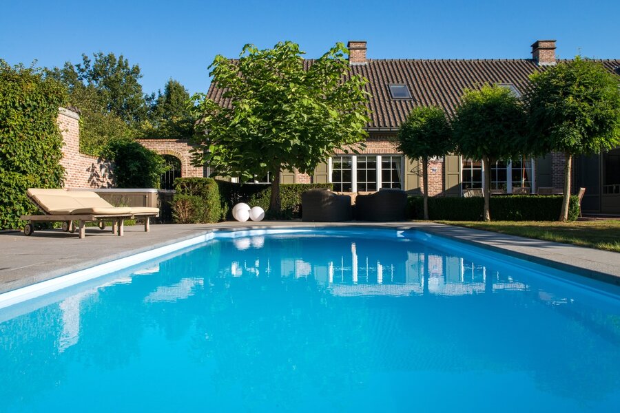 De zonnige, zuidgerichte tuin biedt een idyllisch uitzicht en is volledig aangelegd met een zwembad. Voor ultieme ontspanning beschikt de woning bovendien over een jacuzzi en sauna – het perfecte geheel om te genieten in een privéparadijs.