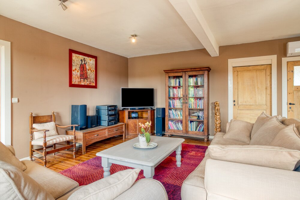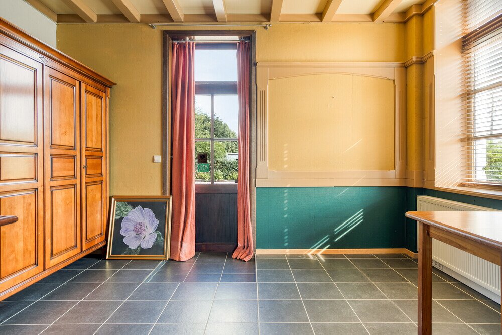 Rechterzijde: een lichtrijke zomerleefruimte, een aansluitende bureauruimte en een tweede vernieuwde keuken. Achter deze keuken bevindt zich bovendien een professionele keuken met extra bergruimte. Verder beschikt de woning over een praktische kelder.