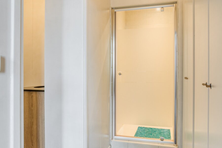 Gelijkvloers: via de ruime inkomhal bereik je twee aparte delen van de woning.