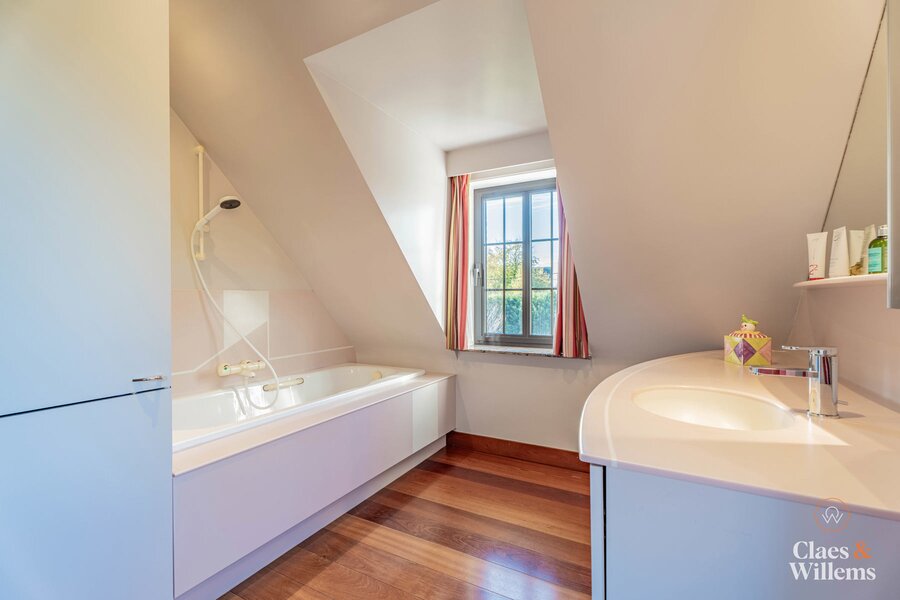 Op de eerste verdieping bevinden zich vier ruime slaapkamers, waaronder een master bedroom met ensuite badkamer. Een tweede badkamer met ligbad, dubbele wastafel en douche zorgt voor extra gebruiksgemak.