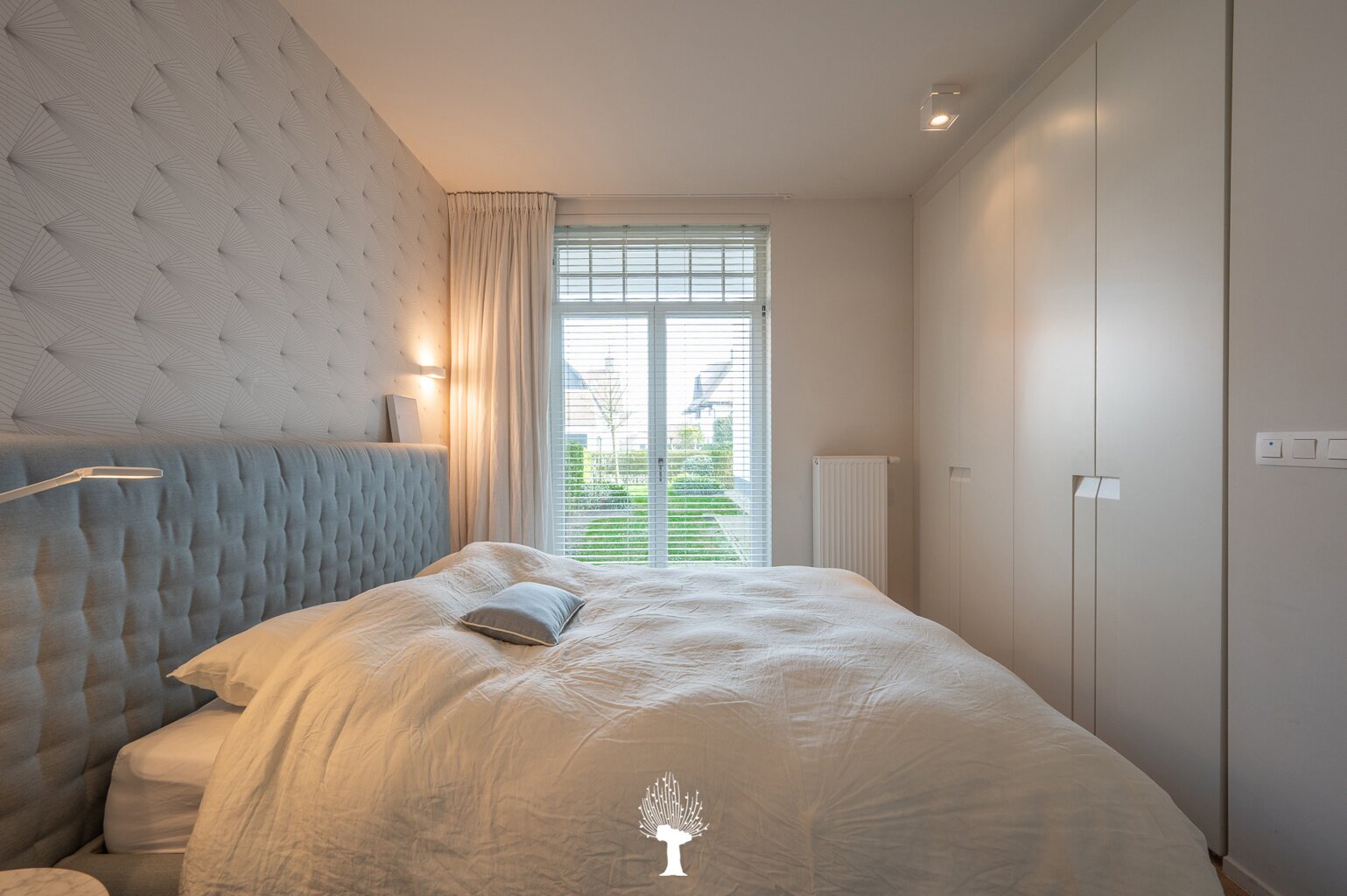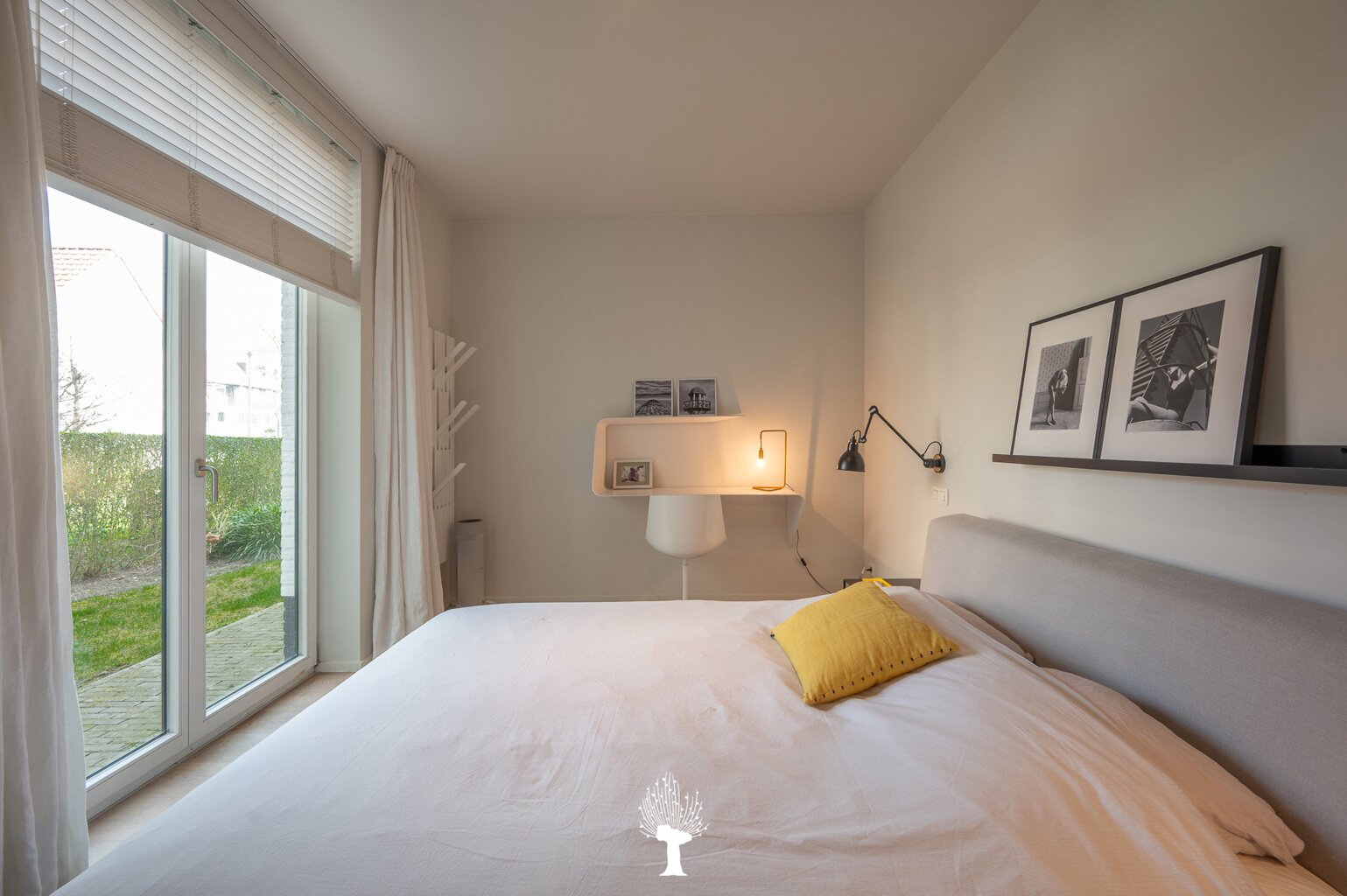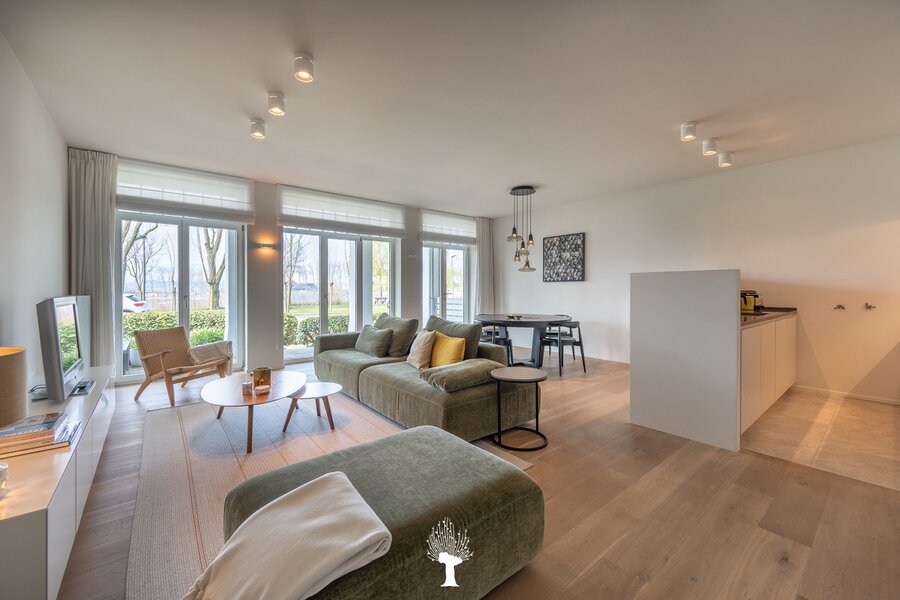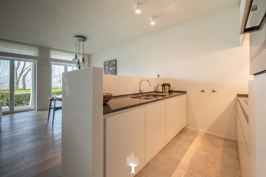 Prachtig appartement met tuin en frontaal zicht op het Duinenwatermeer. Samenstelling: inkom met vestiaire en toilet. Zonnige woon- en eetkamer, brede gevel (6,89m), uitgevend op het terras met zicht op het meer. Volledige geïnstalleerde open keuken (Obumex). Master bedroom met aansluitende douchekamer. 2de slaapkamer met praktische douchekamer. Beide slaapkamers geven uit op een tweede terras en de tuin. Kelder en fietsenberging in de benedenverdieping van de residentie. Contacteer ons voor meer info of een bezoek.