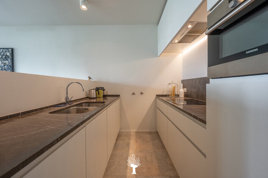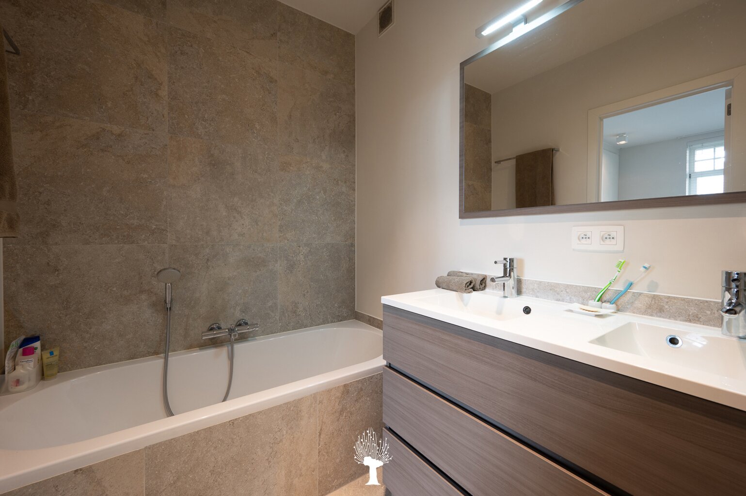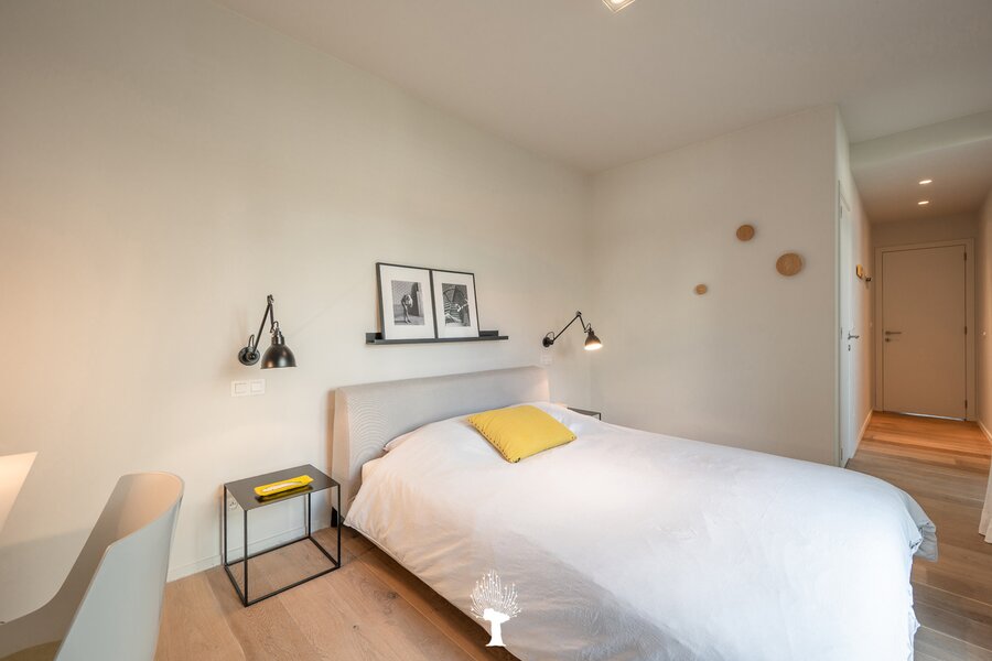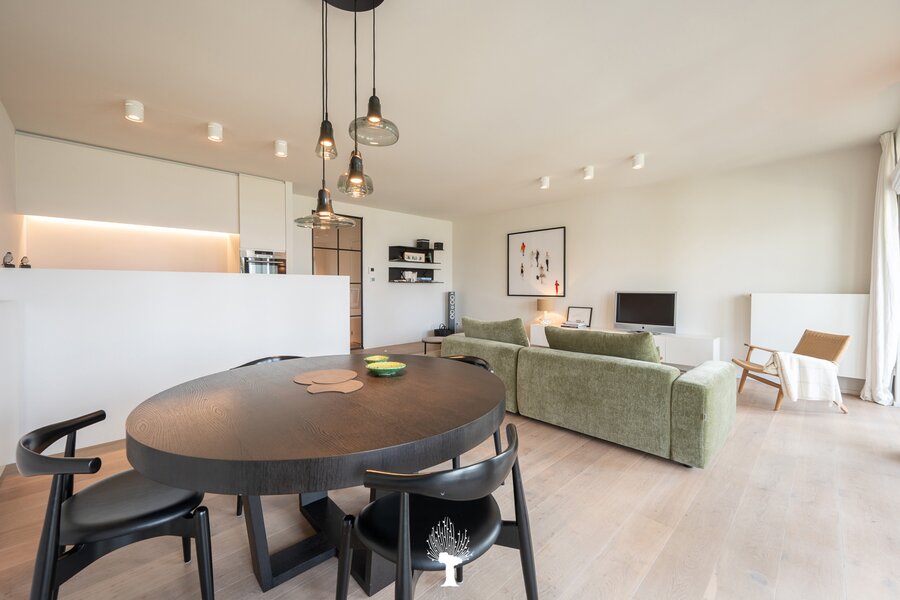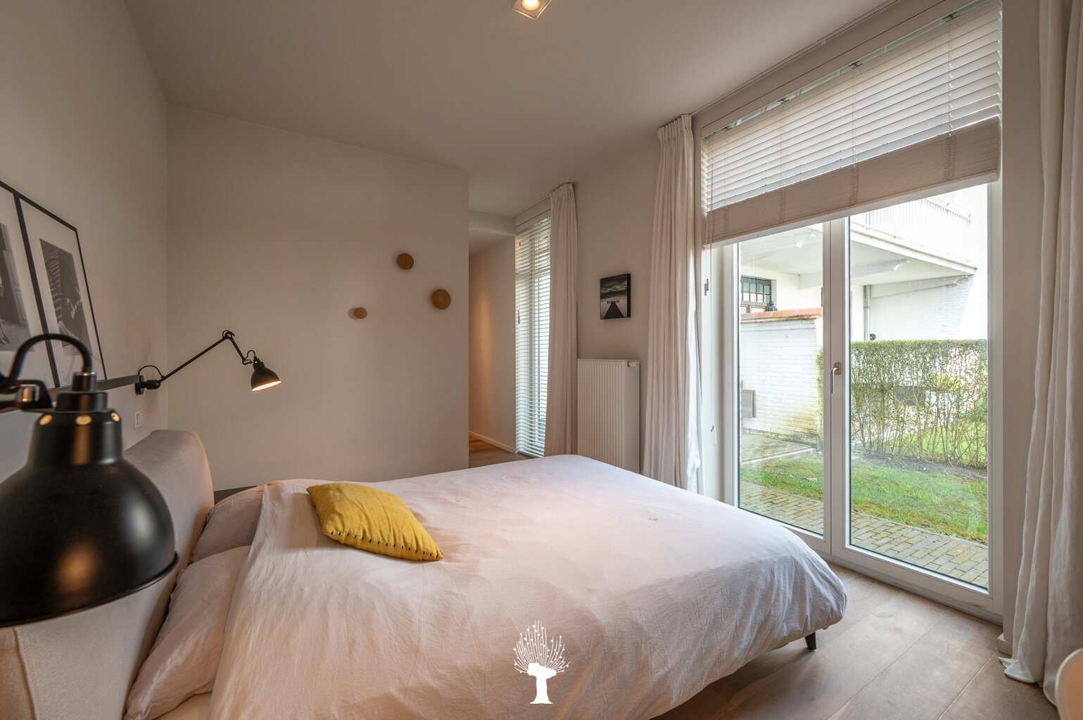 Prachtig appartement met tuin en frontaal zicht op het Duinenwatermeer. Samenstelling: inkom met vestiaire en toilet. Zonnige woon- en eetkamer, brede gevel (6,89m), uitgevend op het terras met zicht op het meer. Volledige geïnstalleerde open keuken (Obumex). Master bedroom met aansluitende douchekamer. 2de slaapkamer met praktische douchekamer. Beide slaapkamers geven uit op een tweede terras en de tuin. Kelder en fietsenberging in de benedenverdieping van de residentie. Contacteer ons voor meer info of een bezoek.