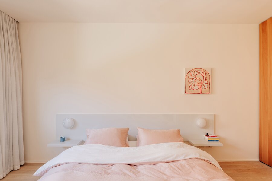 Met twee slaapkamers en twee badkamers geniet je hier van optimaal comfort en privacy. Elk element is zorgvuldig ontworpen om harmonie en elegantie te ademen, van de geïntegreerde verlichting tot het naadloze lijnenspel van het maatwerk. Dit is wonen op hoog niveau: design, licht en sereniteit in perfecte balans.
