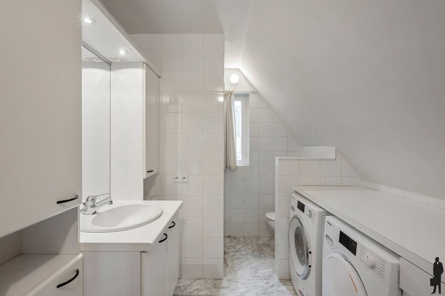 De masterbedroom is voorzien van handige inbouwkasten en ensuite badkamer met ligbad, inloopdouche met dubbele kop, wastafelmeubel en toilet . De 2e badkamer heeft een douche en toilet maar is nu in gebruik als wasruimte.