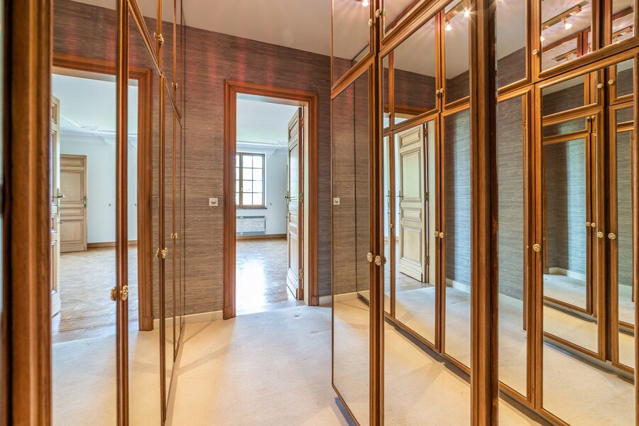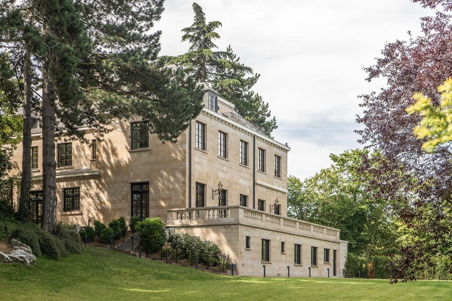 Het is volledig gerenoveerd door "3ème Bureau" en "Esther Gutmer" en heeft een bruto vloeroppervlakte (EPC) van 12910 m². Het huis heeft een grote hal met een mezzanine. Op de begane grond bevinden zich een ruime woonkamer met lambrisering, een formele eetkamer, een kleinere privé-eetkamer en een kleine woonkamer, een nieuwe professionele "La Cornue"-keuken en een kantoor. Boven bevindt zich een master suite met een woonkamer, slaapkamer, badkamer en kleedkamer, evenals vijf slaapkamers met kleedkamers en badkamers. Een aparte conciërgesuite met een woonkamer, twee slaapkamers en een badkamer maakt het geheel compleet.
