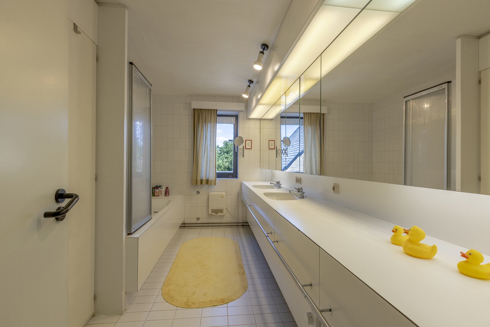 De verdieping is ingericht rondom een grote nachthall met 5 slaapkamers waarvan één master bedroom met eigen toilet en badkamer, twee riante slaapkamers +/- 25m², één kamer van 16m² met eigen douchehoek en één prachtig slaapkamertje van 8,5m² met leuk dakterras. Verder voorziet de verdieping in een extra bureauruimte/dressing, apart toilet en een derde badkamer.