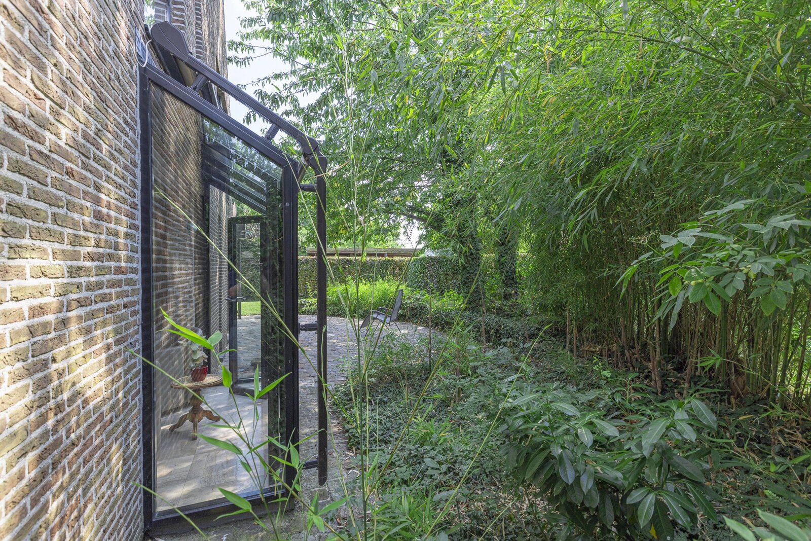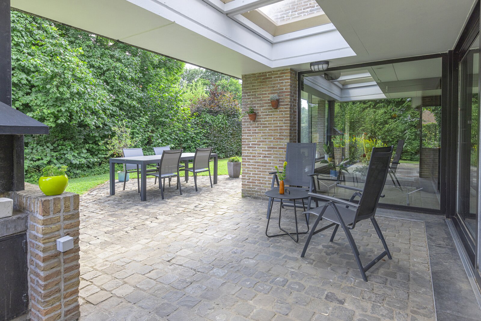 Dankzij de centrale inplanting van de woning op het perceel pronkt de groene tuin en omgeving met verscheidene leuke hoekjes en terraspartijen.